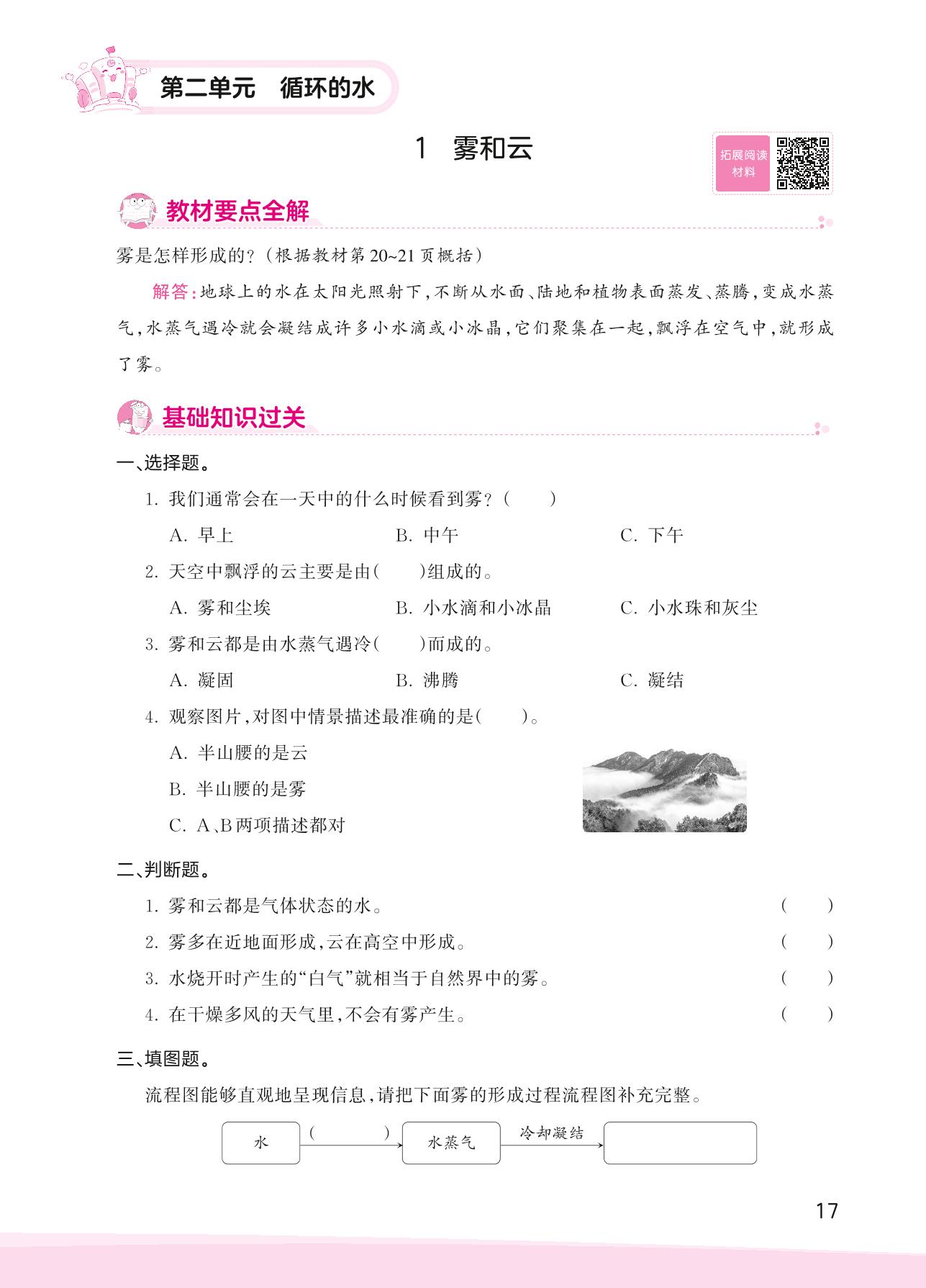 2023上册六年级科学大象版 第二单元 循环的水——1 雾和云