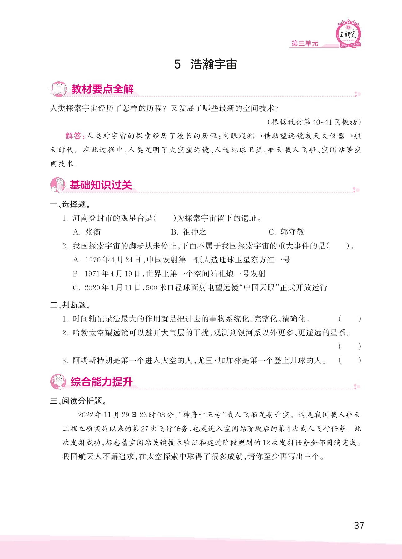2023上册六年级科学大象版 第三单元 浩瀚宇宙——5 浩瀚宇宙