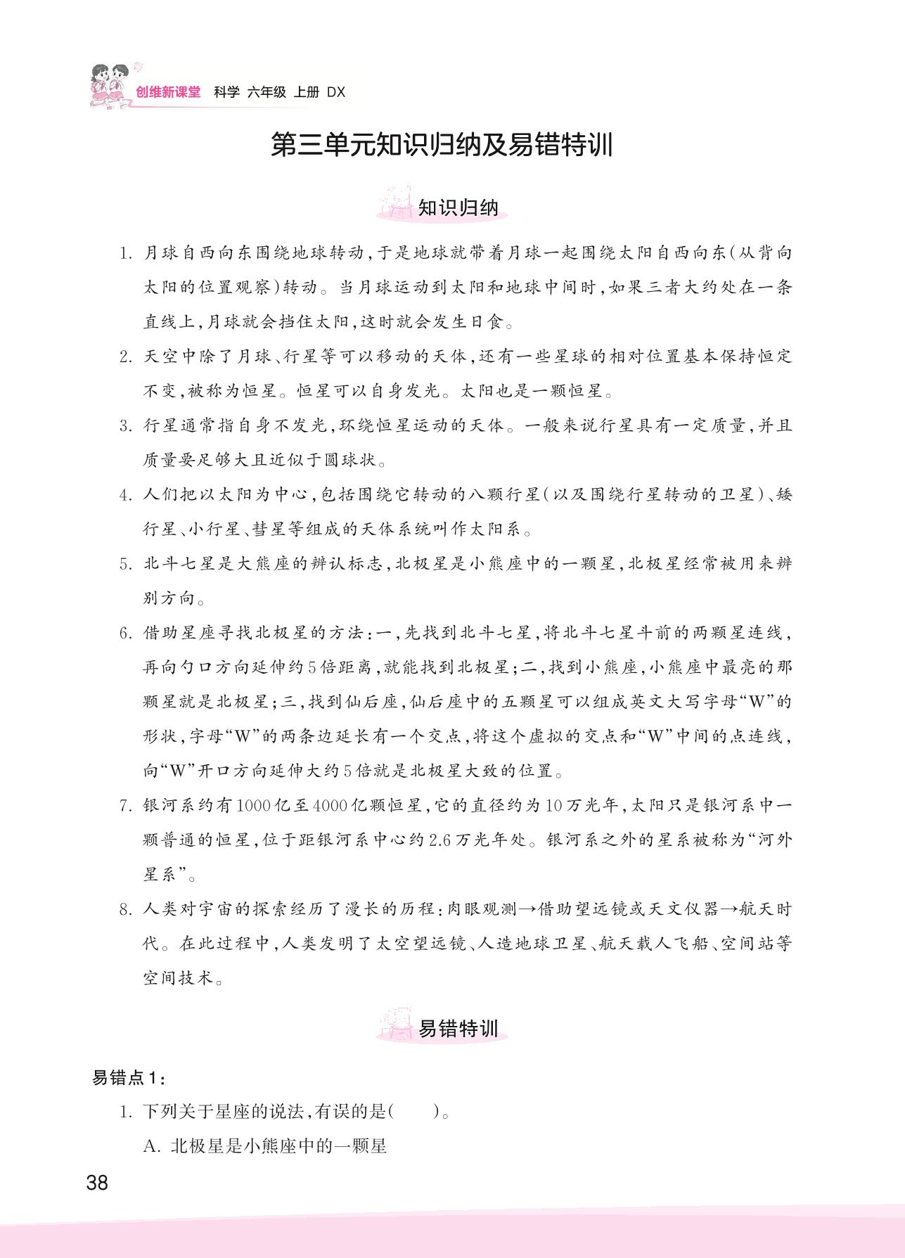 2023上册六年级科学大象版 第三单元知识归纳及易错特训