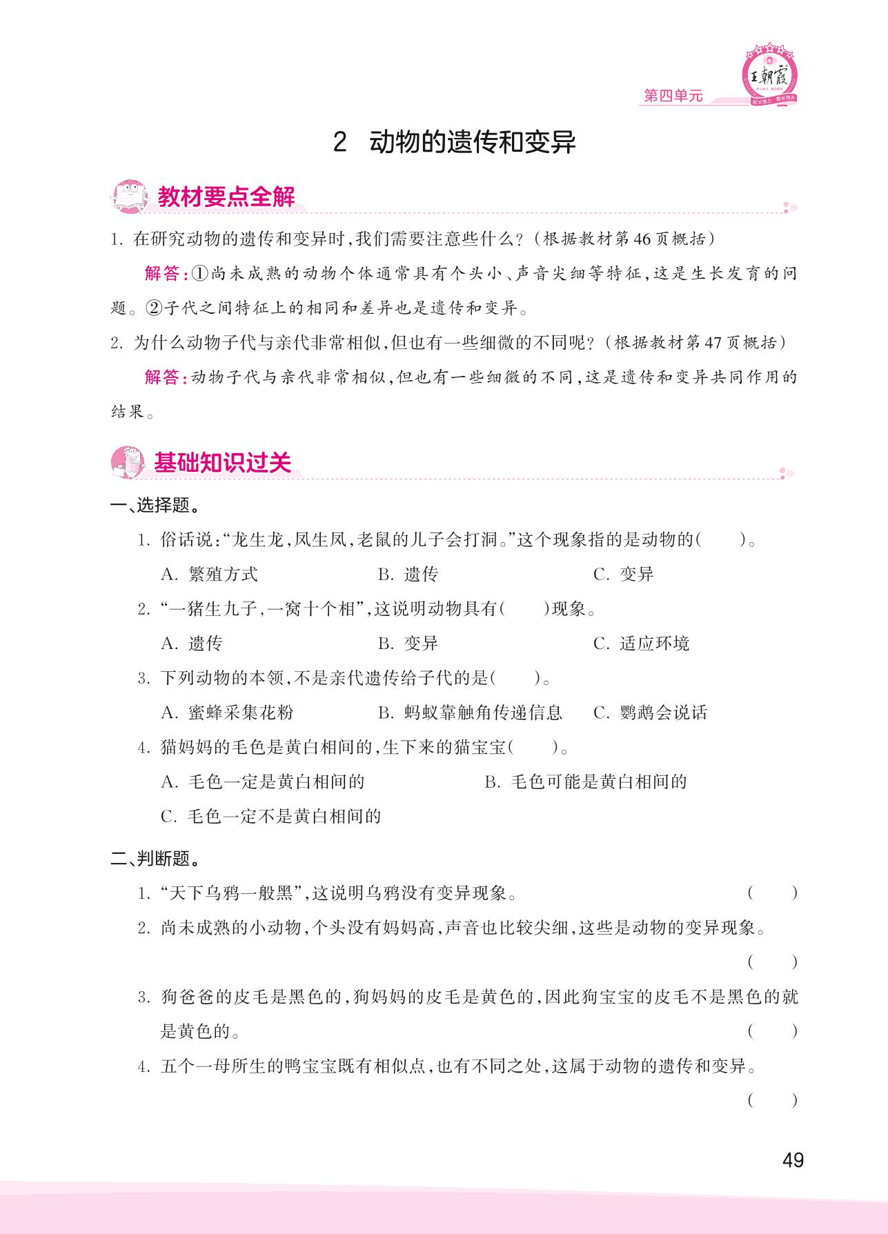 2023上册六年级科学大象版 第四单元 遗传和变异——2 动物的遗传和变异
