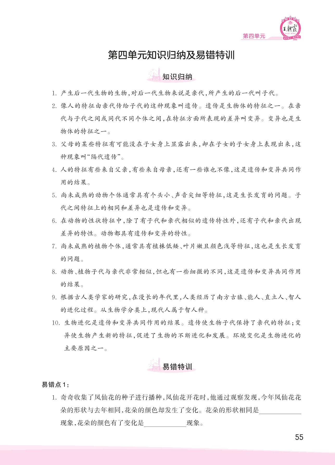 2023上册六年级科学大象版 第四单元知识归纳及易错特训