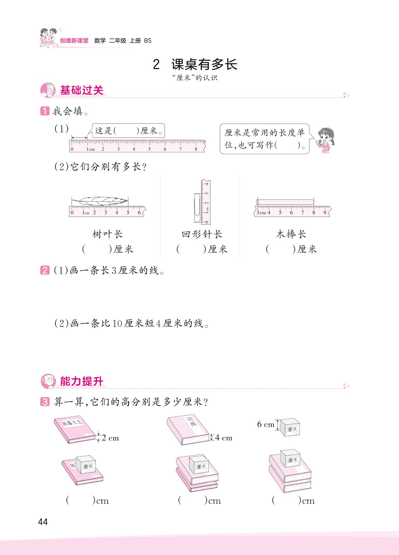 2023上册二年级数学北师版 六 测量——2 课桌有多长