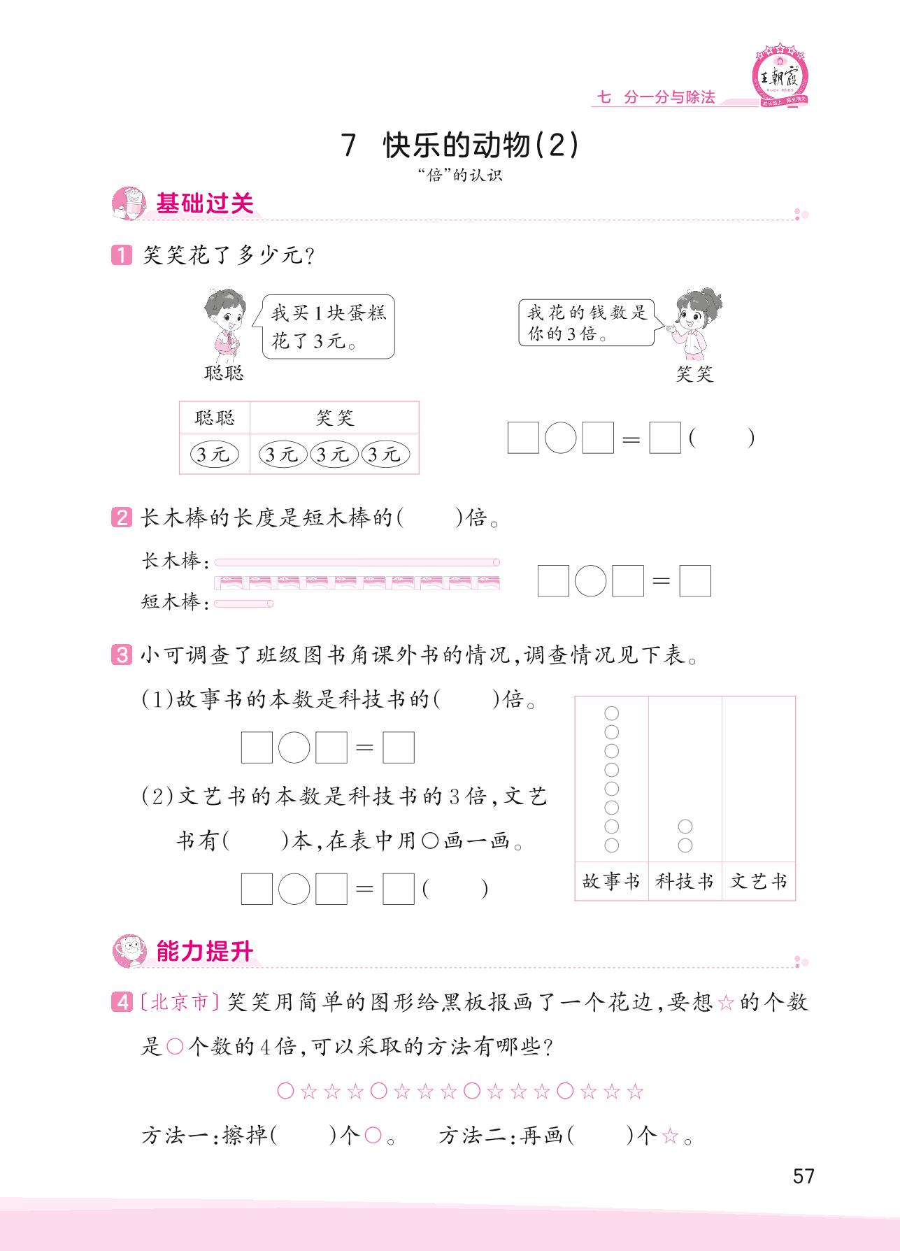 2023上册二年级数学北师版 七 分一分与除法——7 快乐的动物(2)