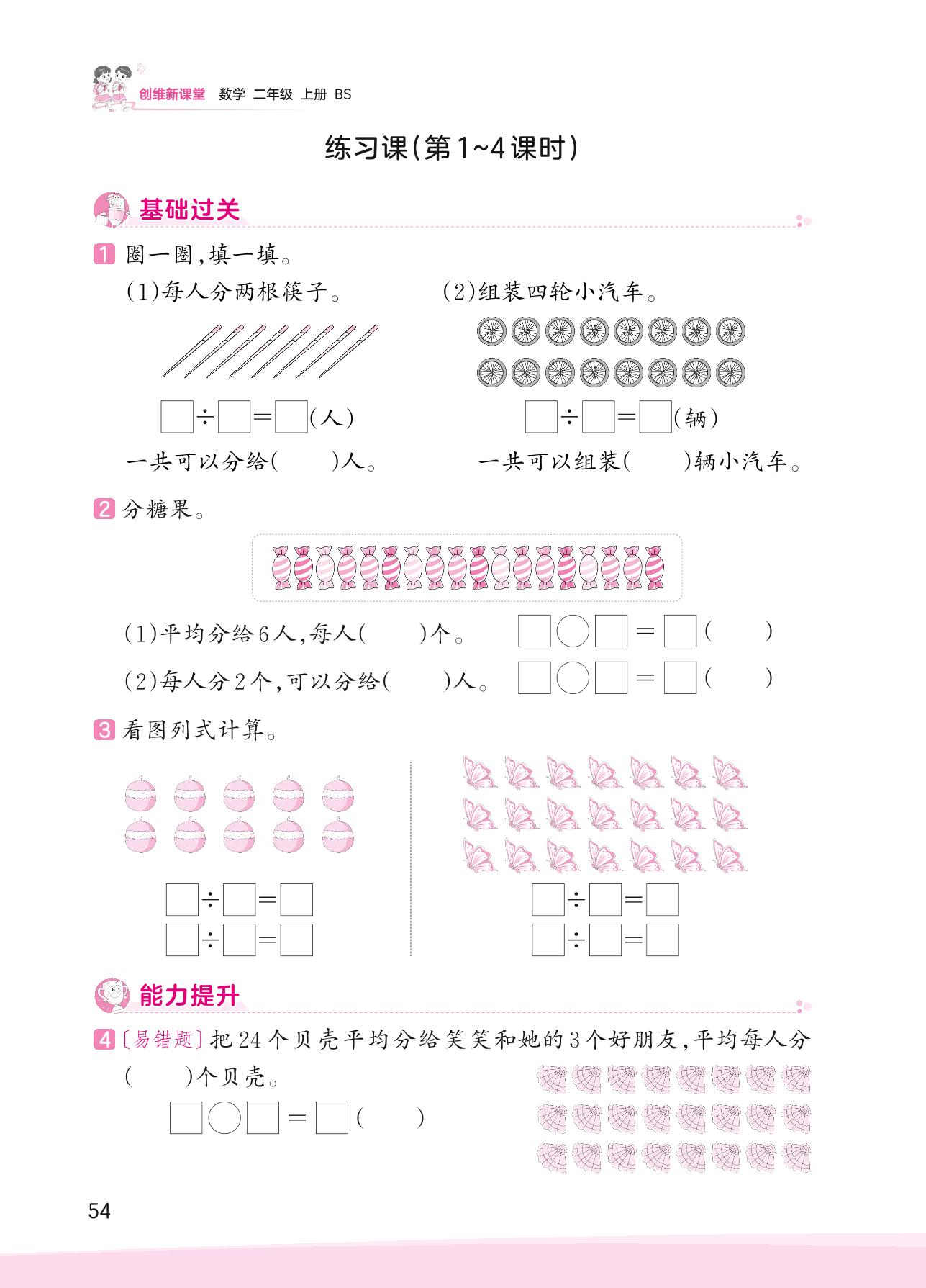 2023上册二年级数学北师版 七 分一分与除法——练习课(第1~4课时)