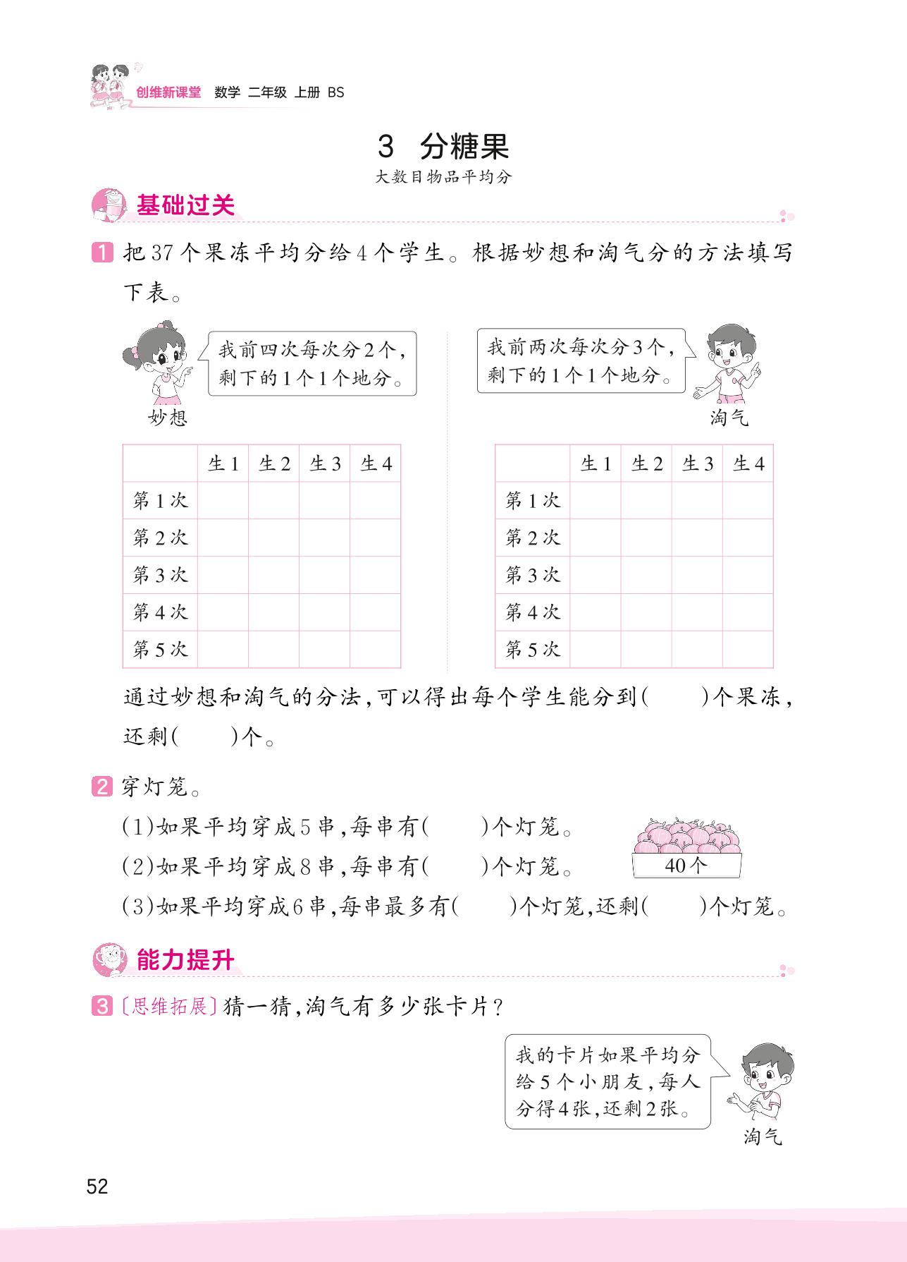 2023上册二年级数学北师版 七 分一分与除法——3 分糖果