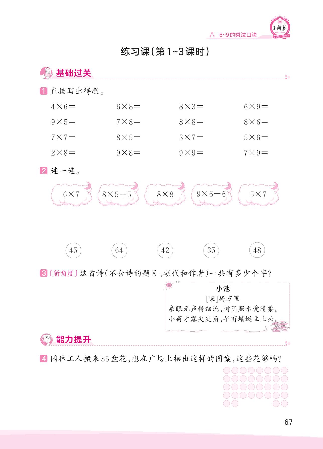 2023上册二年级数学北师版 八 6~9的乘法口诀——练习课(第1~3课时)