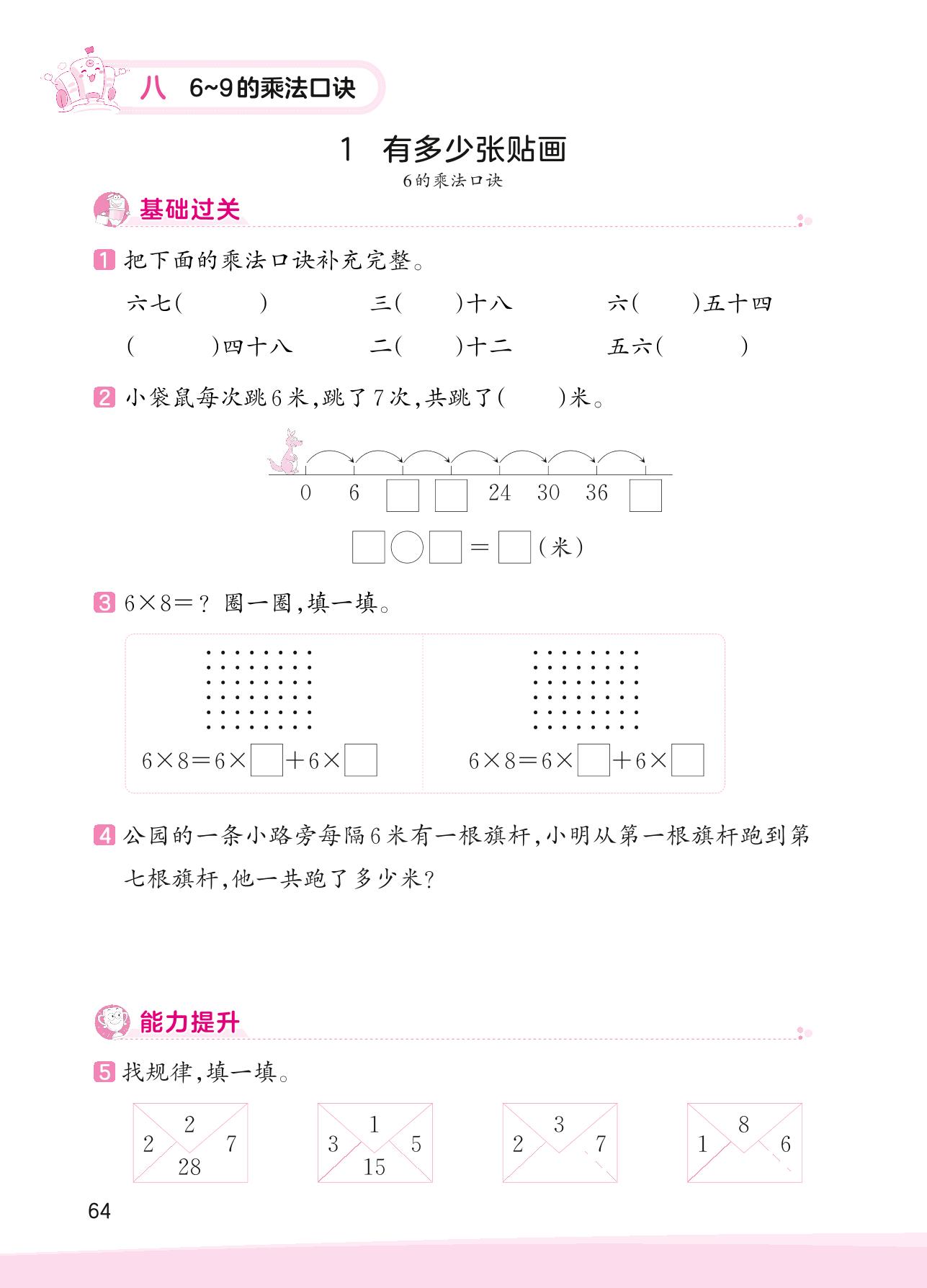 2023上册二年级数学北师版 八 6~9的乘法口诀——1 有多少张贴画
