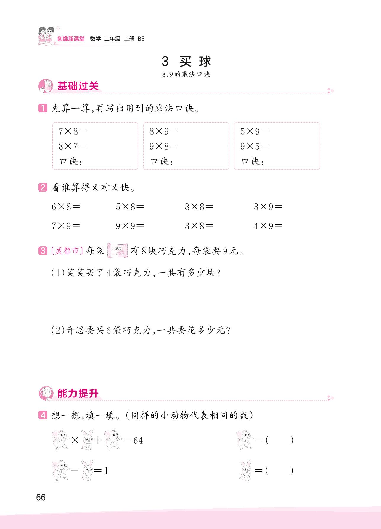 2023上册二年级数学北师版 八 6~9的乘法口诀——3 买球