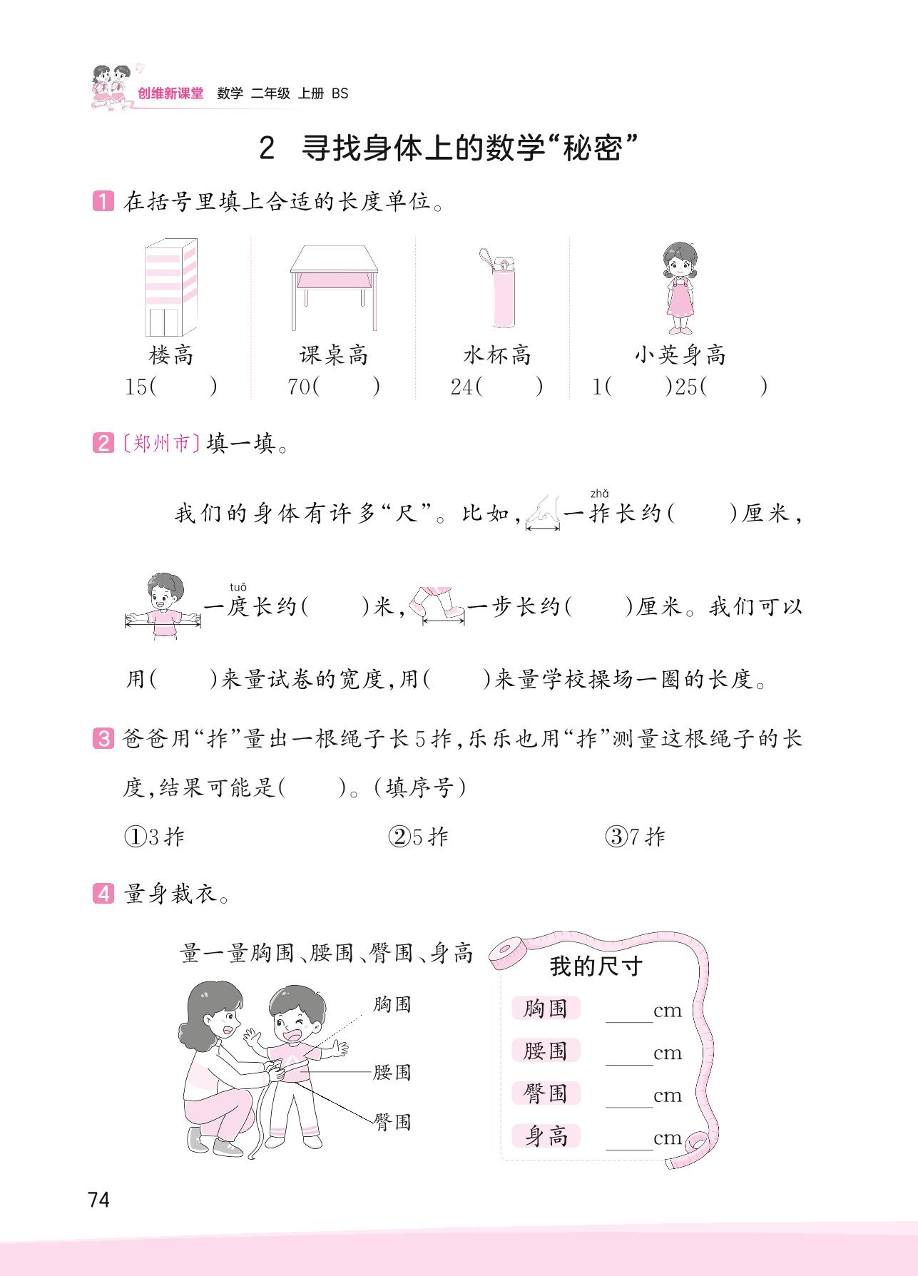 2023上册二年级数学北师版 数学好玩——2 寻找身体上的数学“秘密”