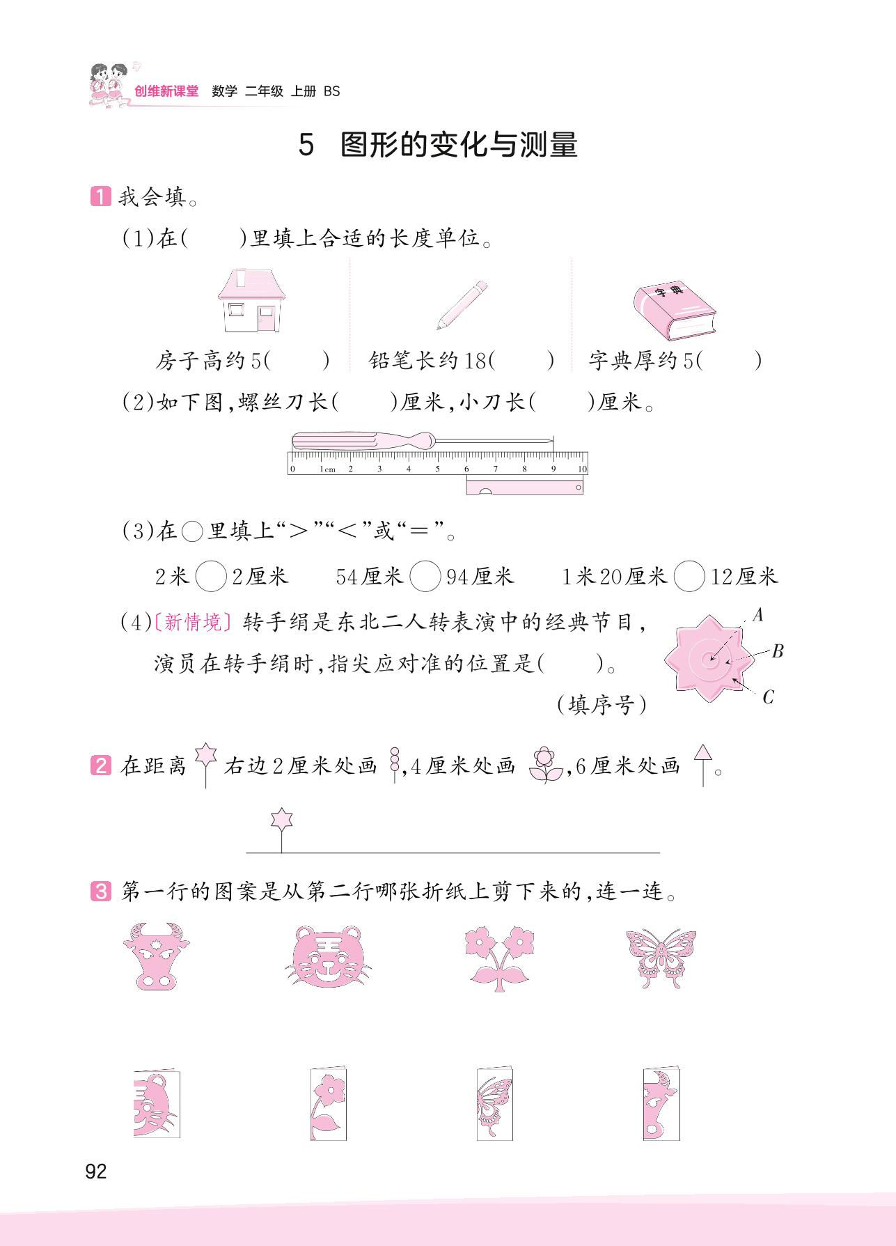 2023上册二年级数学北师版 总复习——5 图形的变化与测量