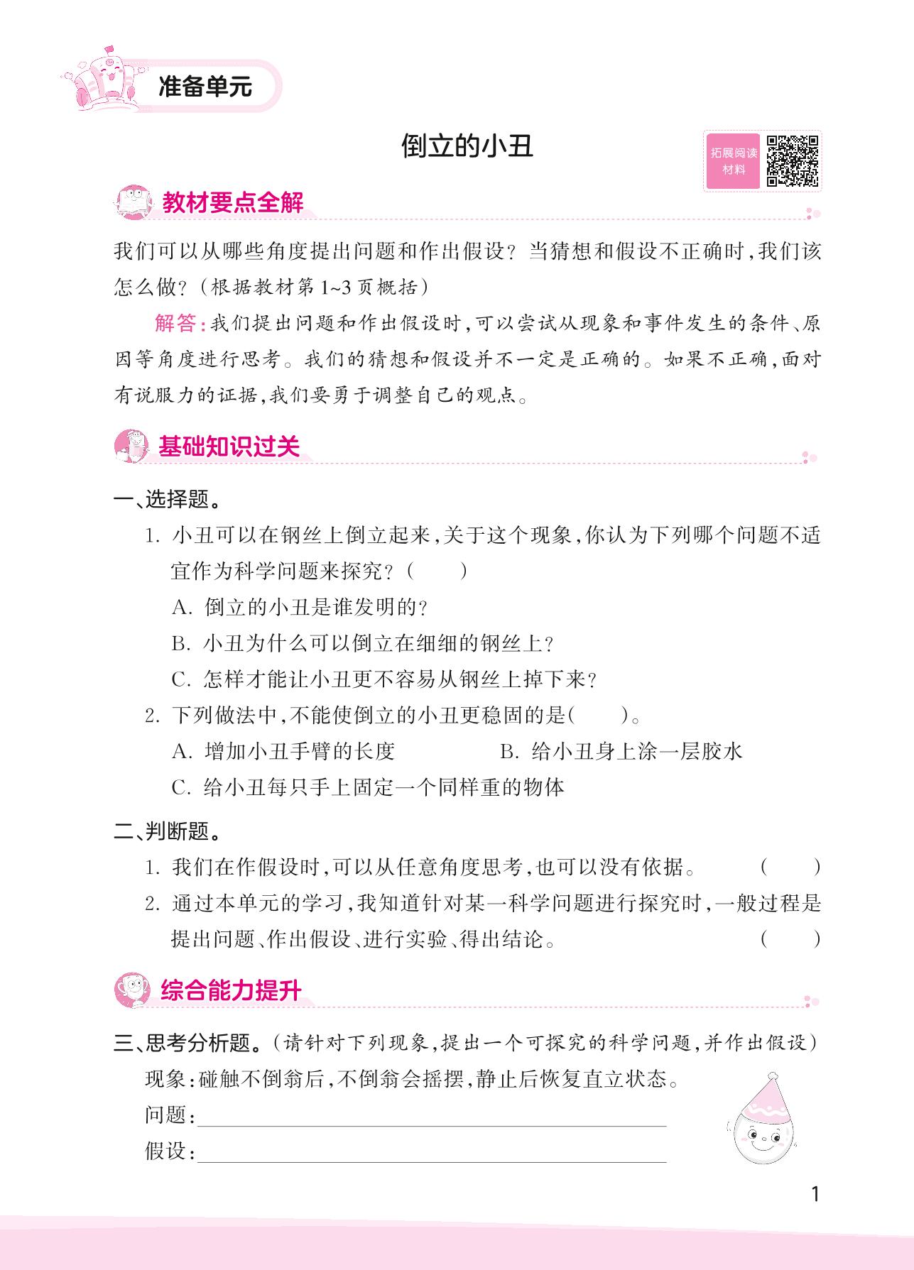 2023上册三年级科学大象版 准备单元——倒立的小丑