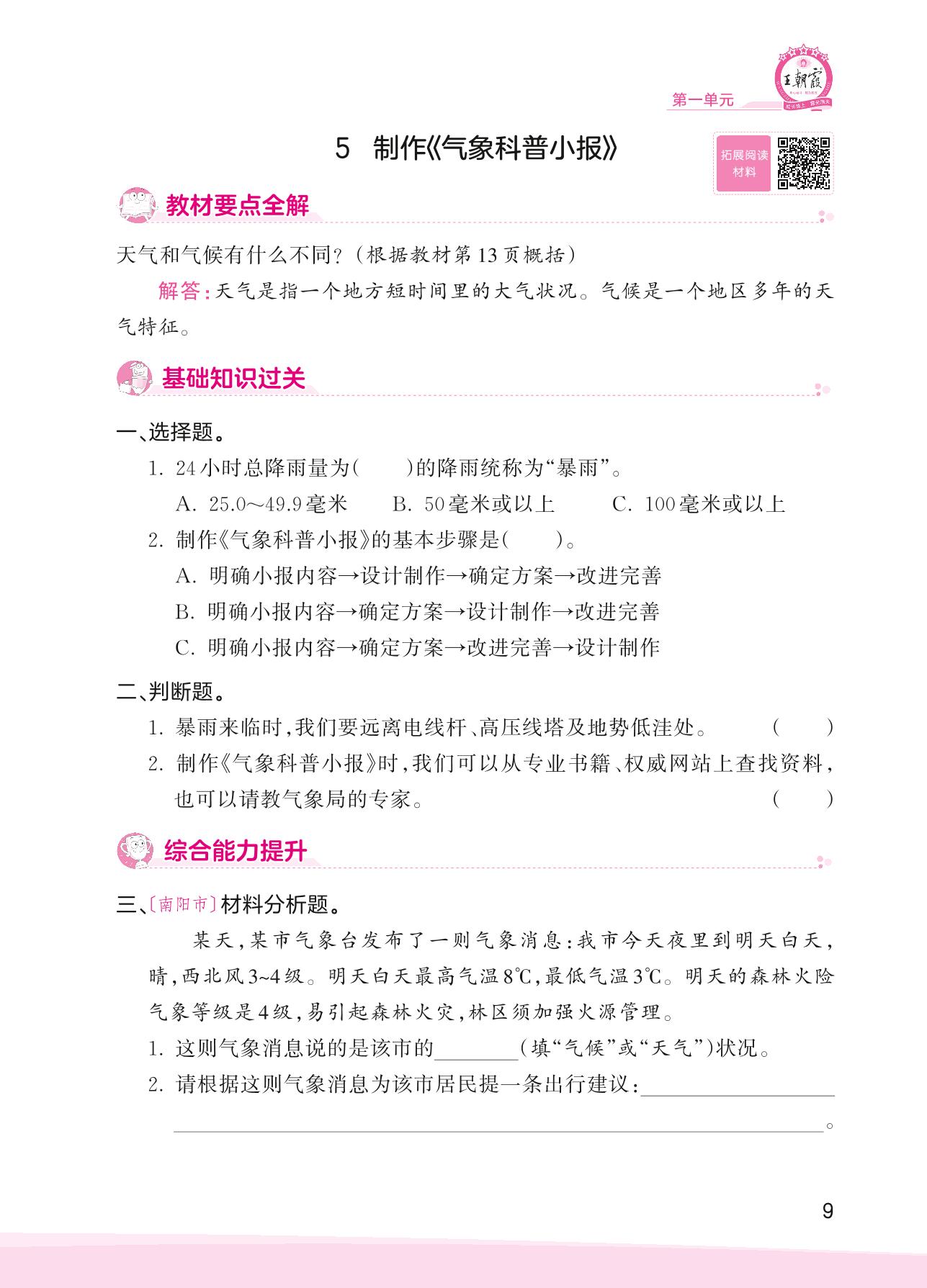 2023上册三年级科学大象版 第一单元 小小气象员——5 制作《气象科普小报》