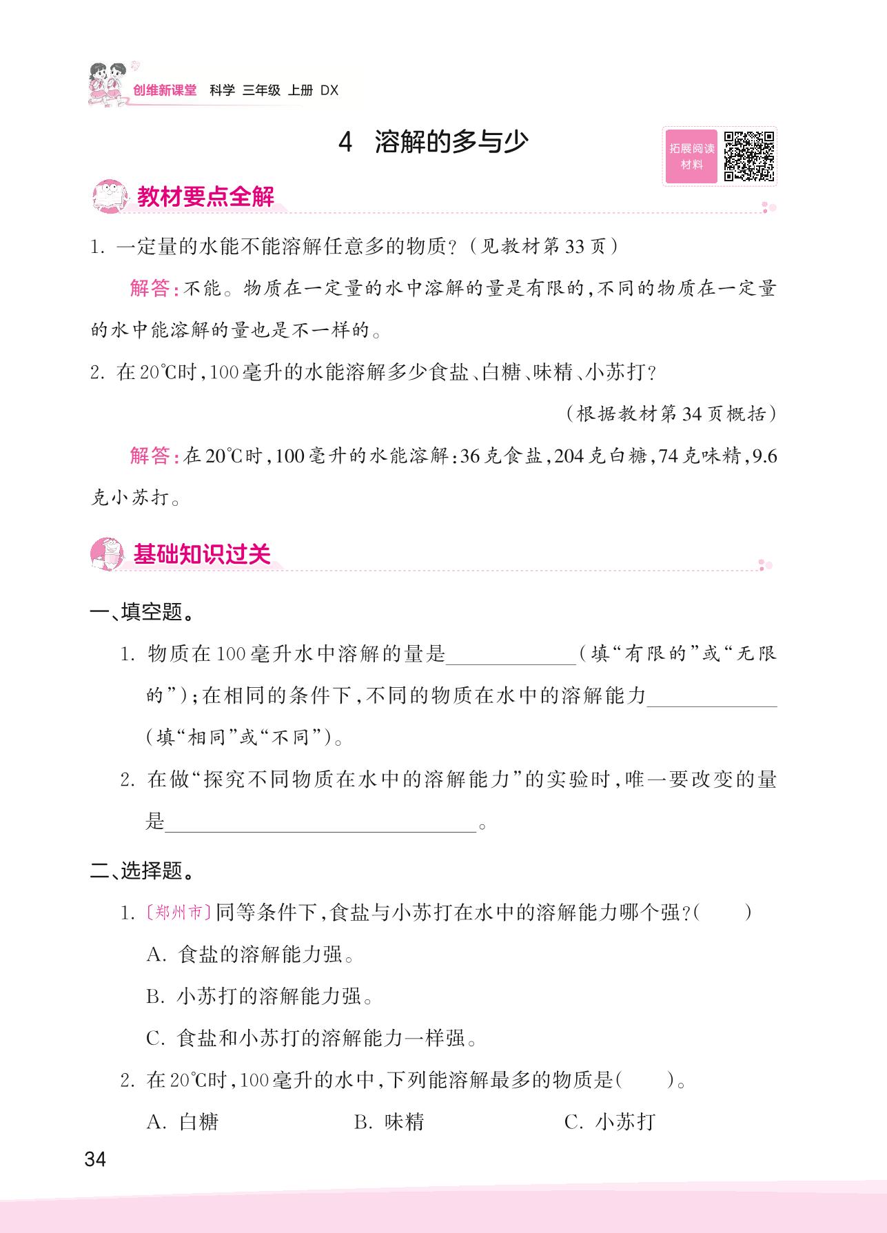 2023上册三年级科学大象版 第三单元 溶解的秘密——4 溶解的多与少