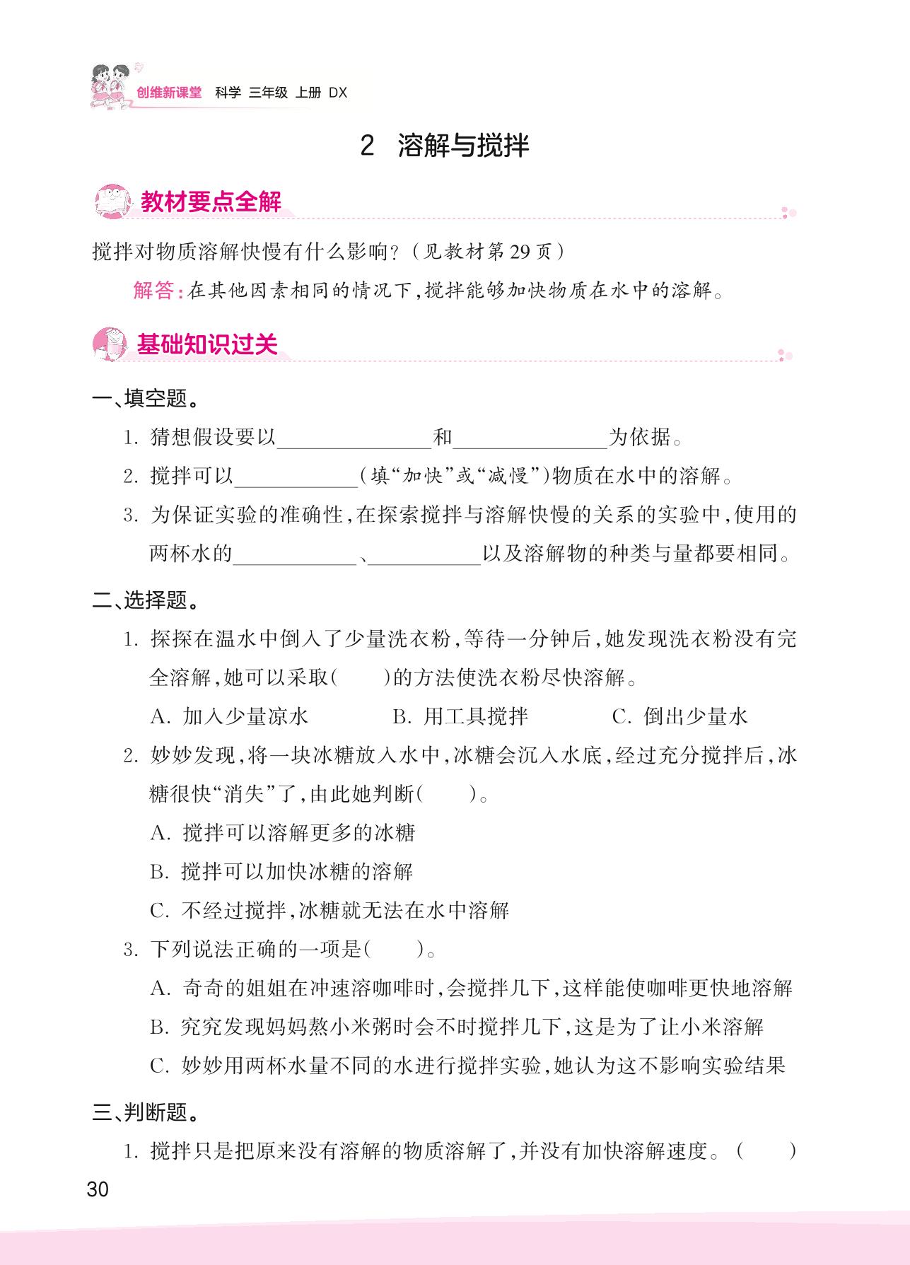 2023上册三年级科学大象版 第三单元 溶解的秘密——2 溶解与搅拌