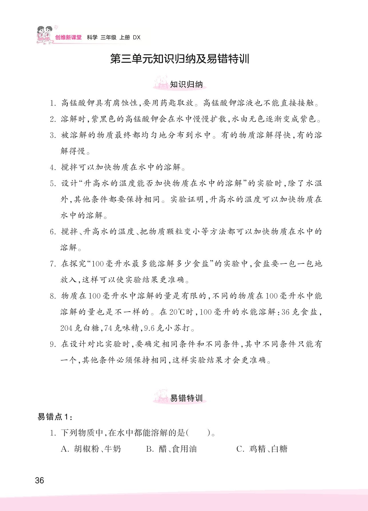 2023上册三年级科学大象版 第三单元知识归纳及易错特训