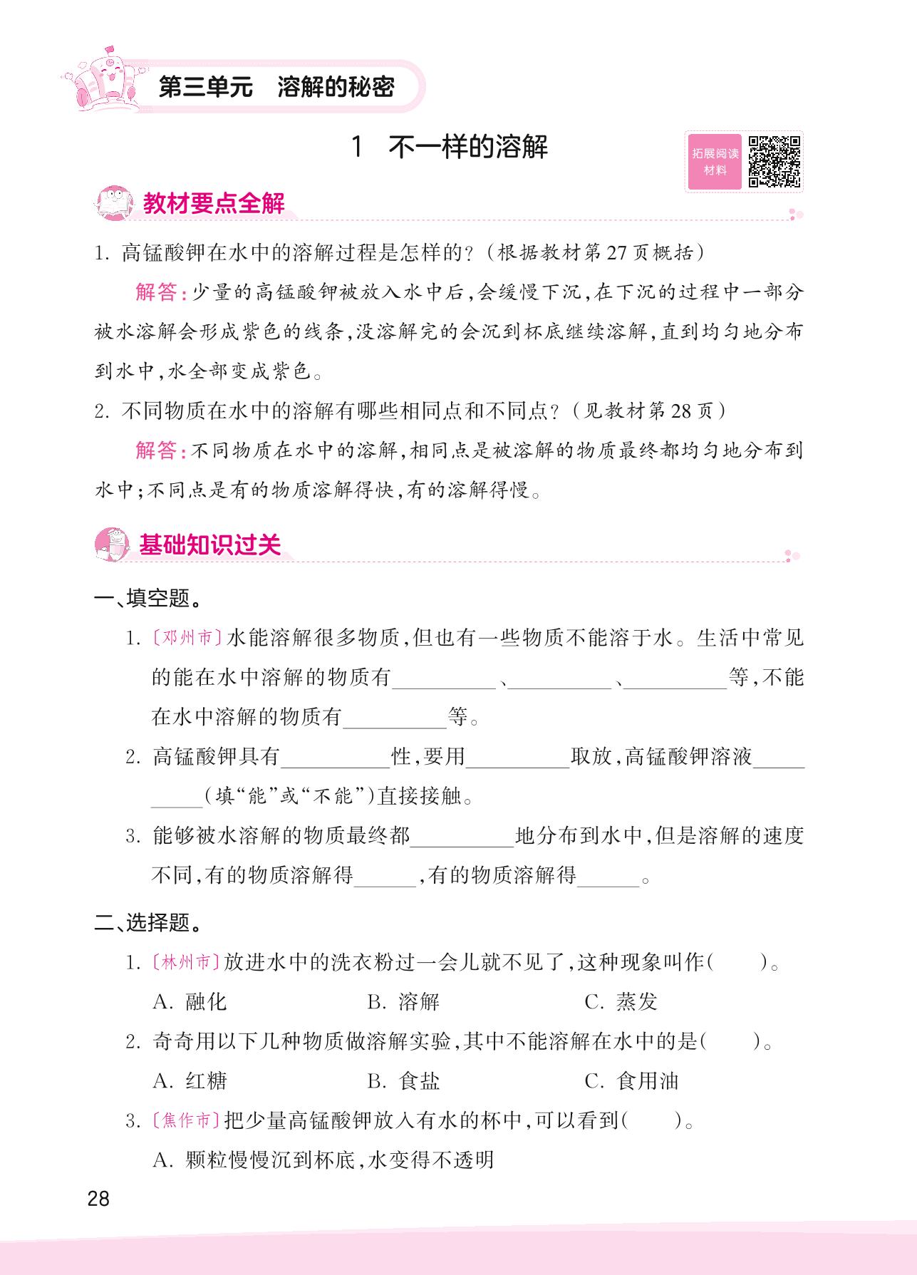 2023上册三年级科学大象版 第三单元 溶解的秘密——1 不一样的溶解