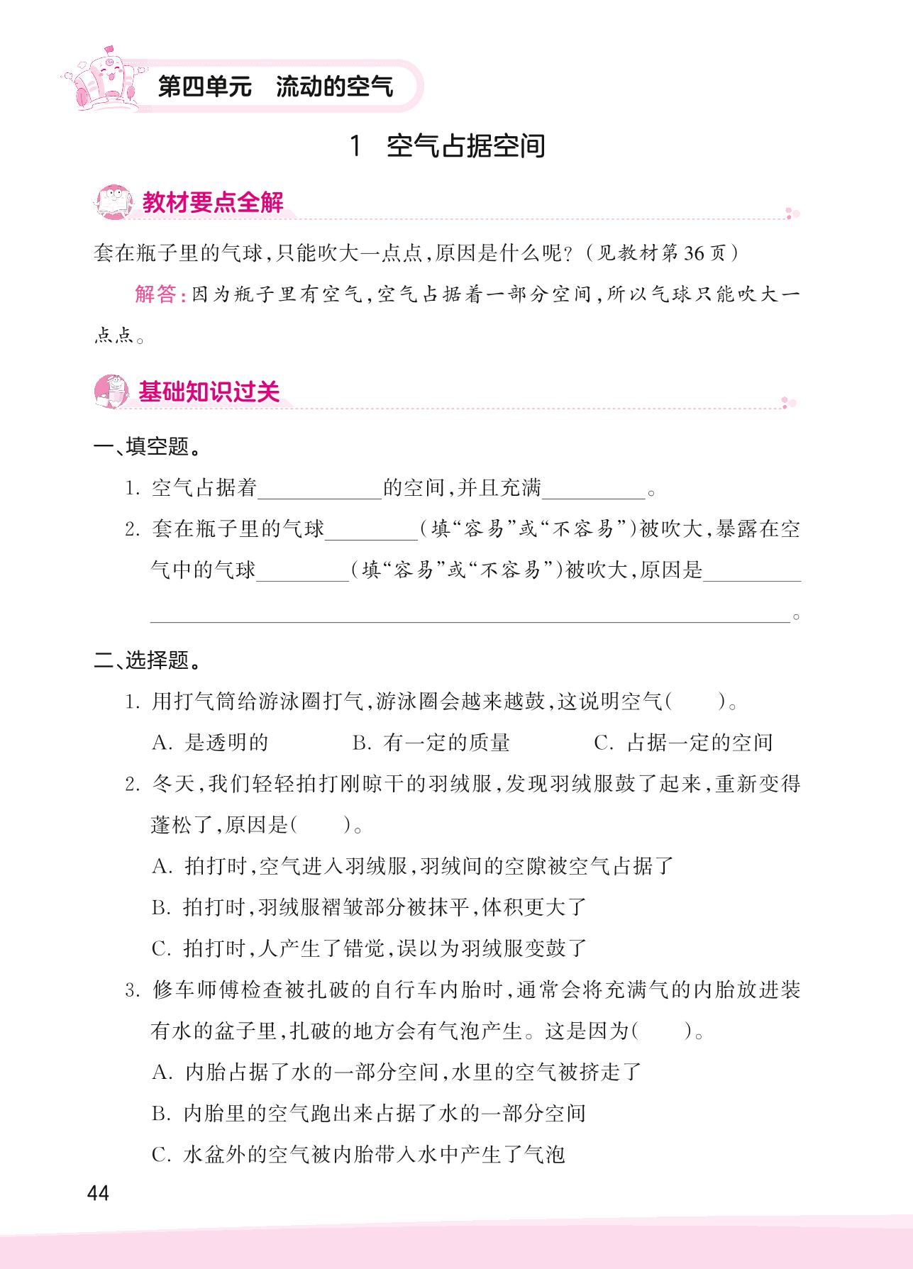 2023上册三年级科学大象版 第四单元 流动的空气——1 空气占据空间