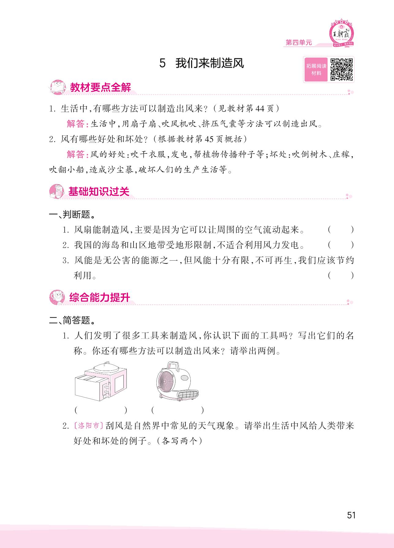 2023上册三年级科学大象版 第四单元 流动的空气——5 我们来制造风