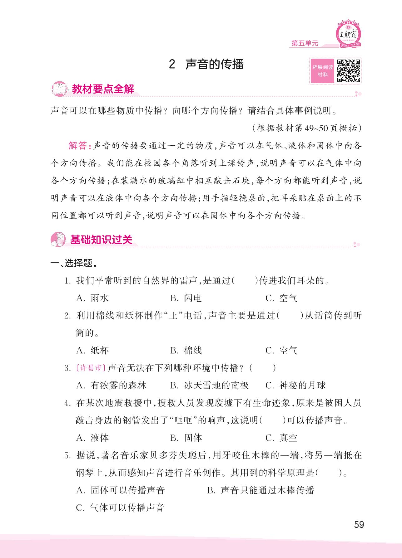 2023上册三年级科学大象版 第五单元 奇妙的声音——2 声音的传播