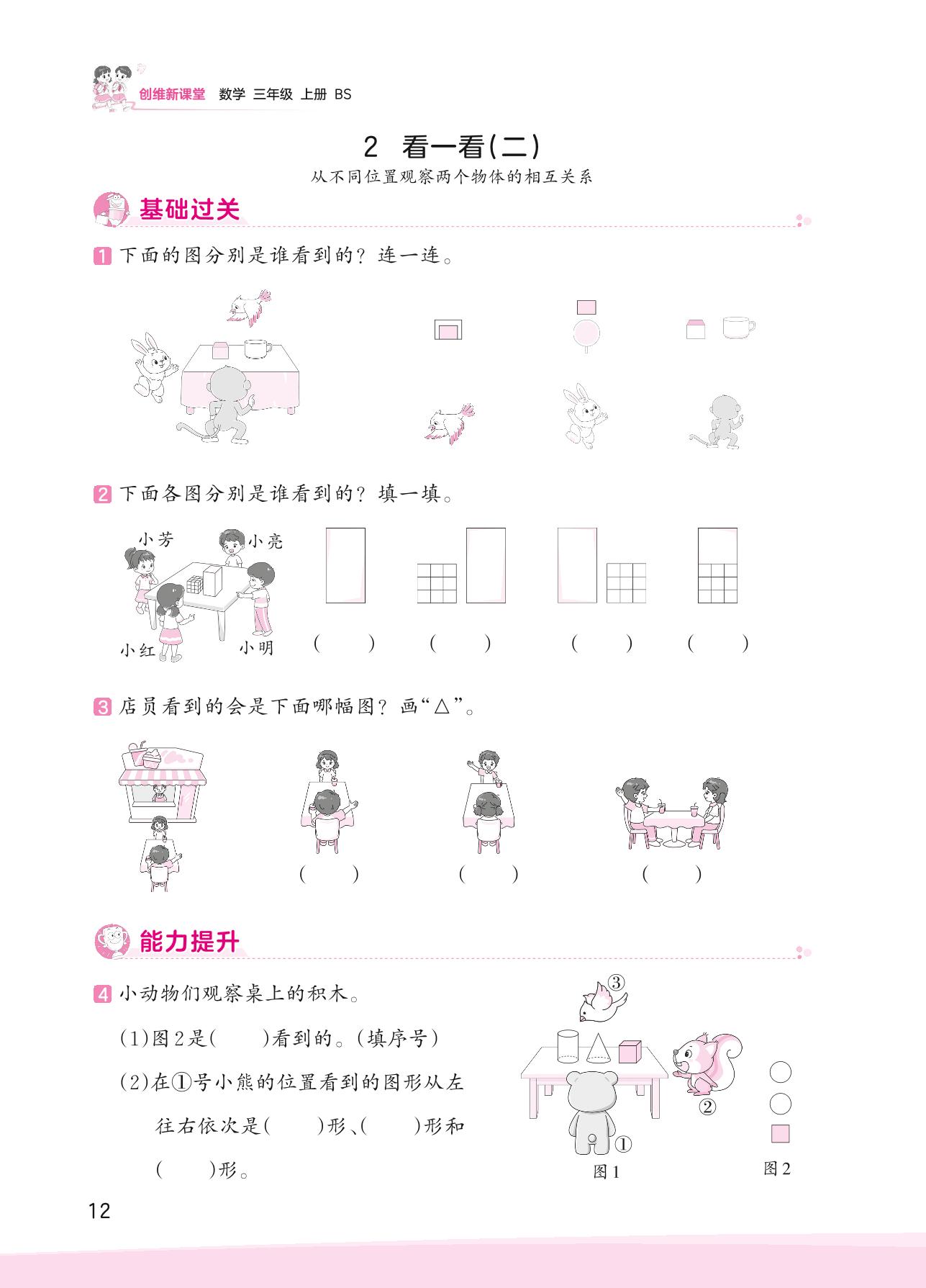 2023上册三年级数学北师版 二 观察物体——2 看一看(二)