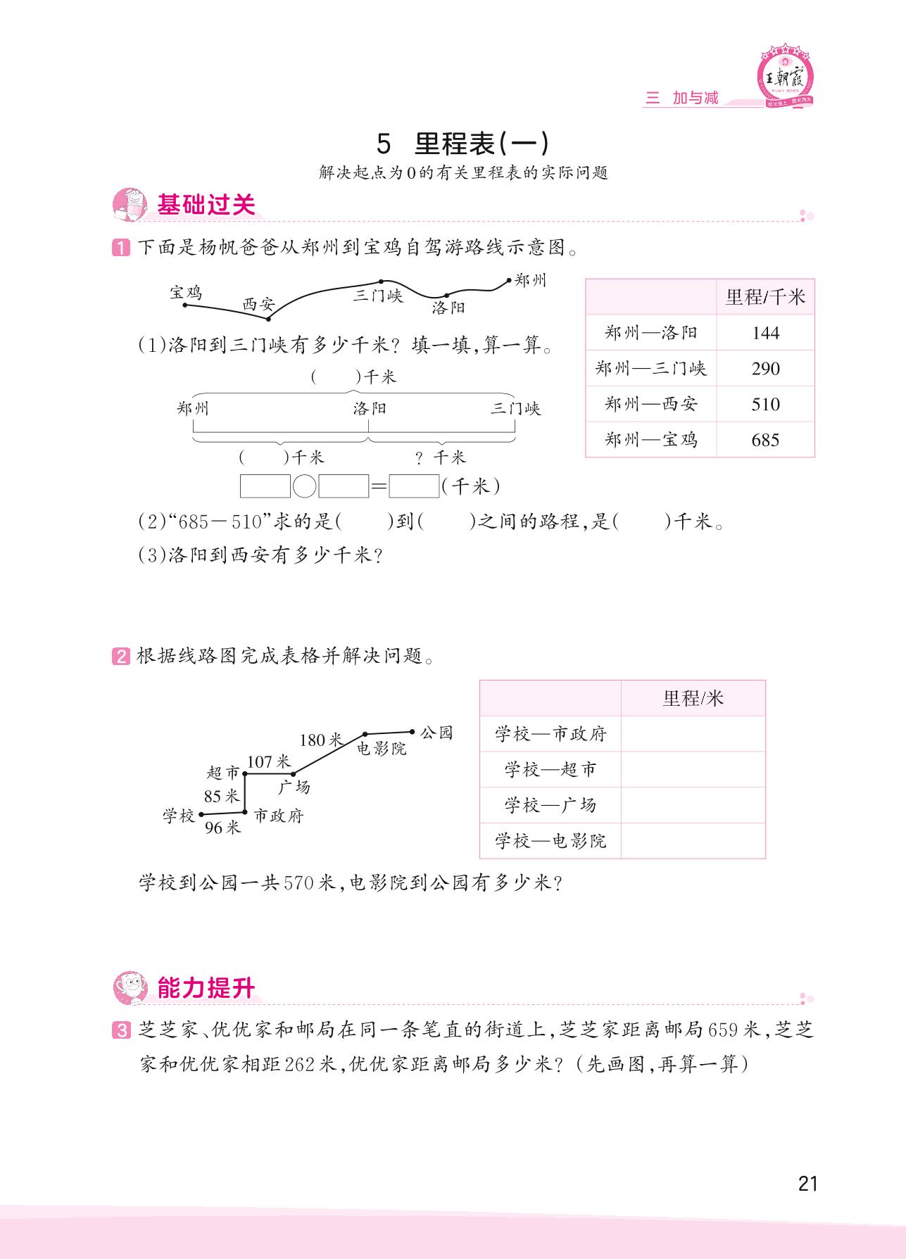 2023上册三年级数学北师版 三 加与减——5 里程表(一)