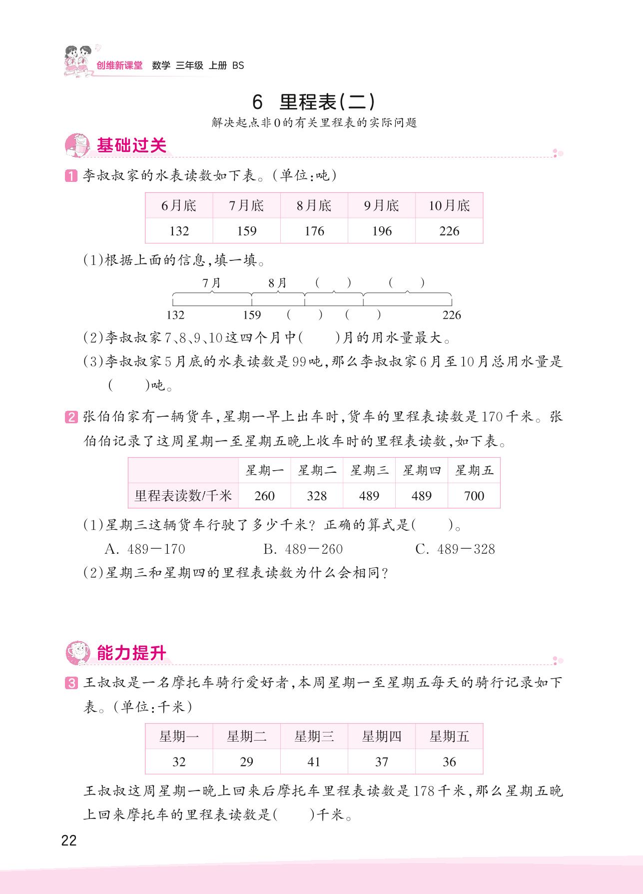 2023上册三年级数学北师版 三 加与减——6 里程表(二)