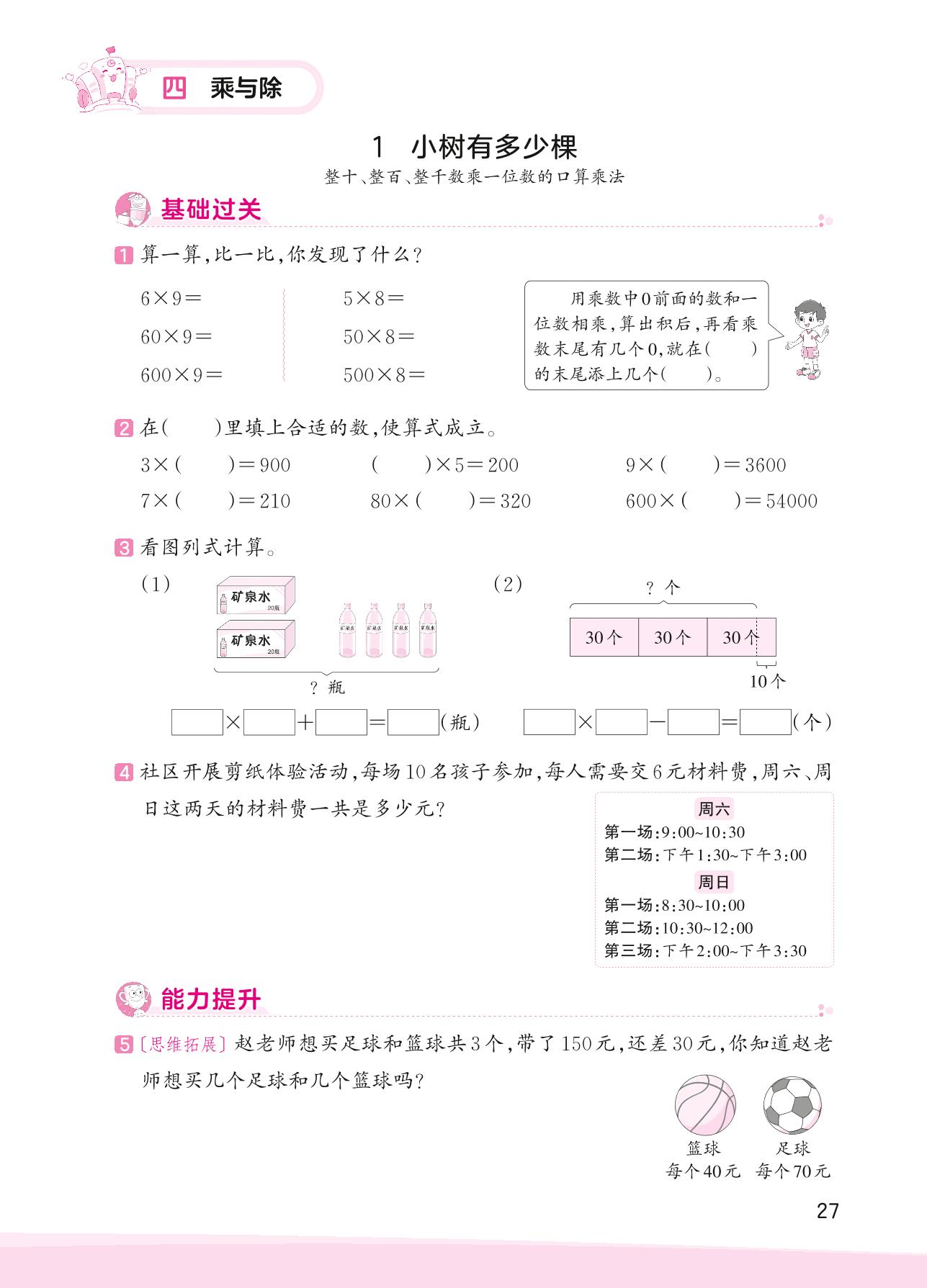 2023上册三年级数学北师版 四 乘与除——1 小树有多少棵