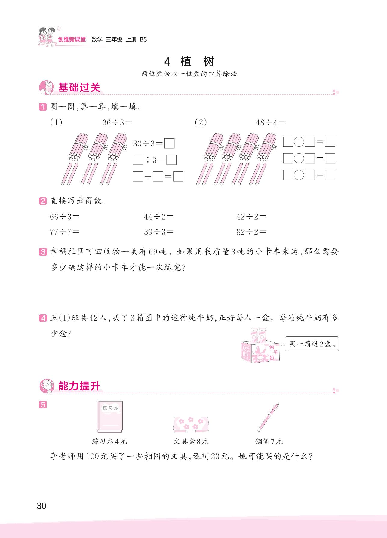 2023上册三年级数学北师版 四 乘与除——4 植树