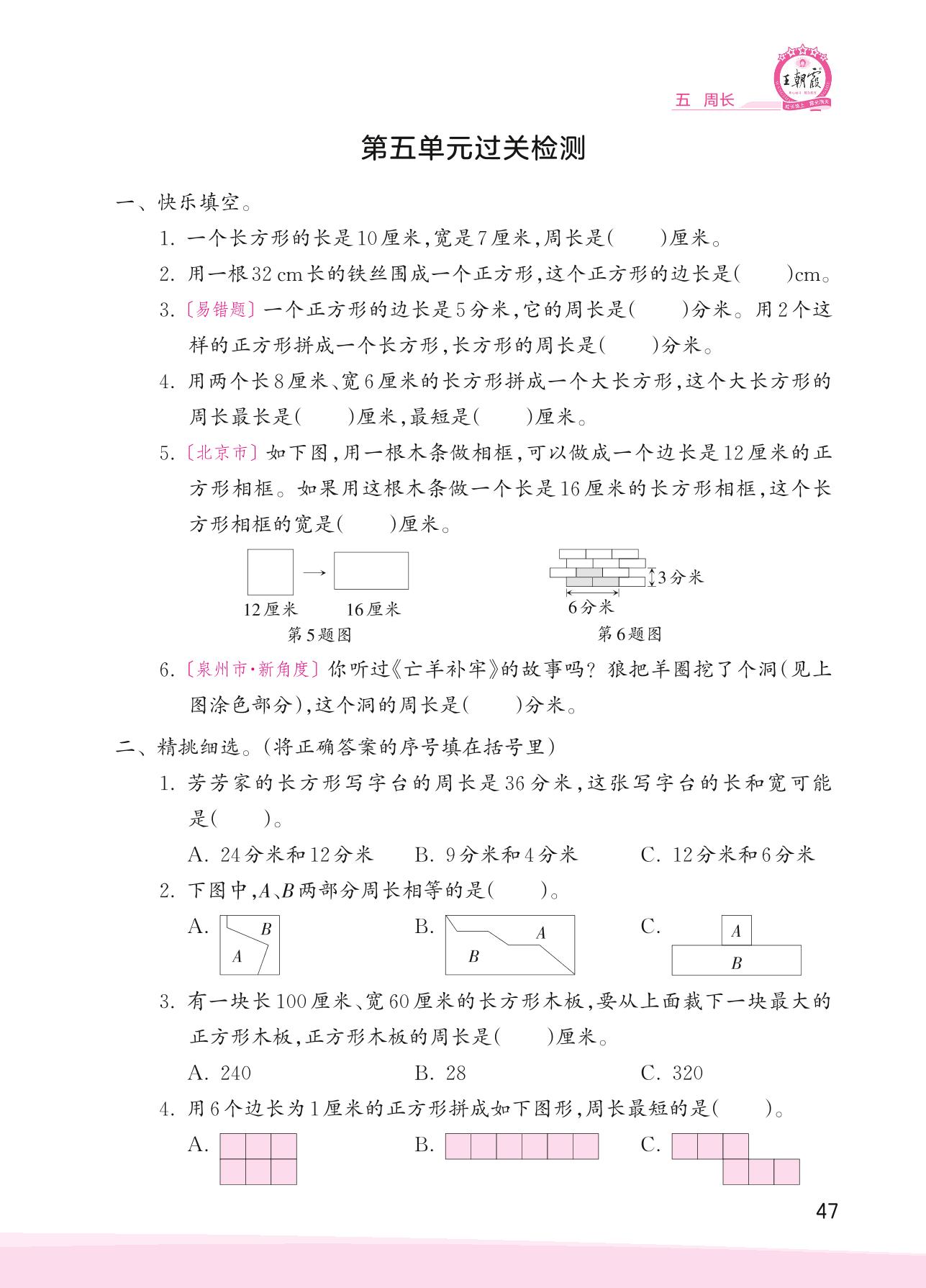 2023上册三年级数学北师版 第五单元过关检测