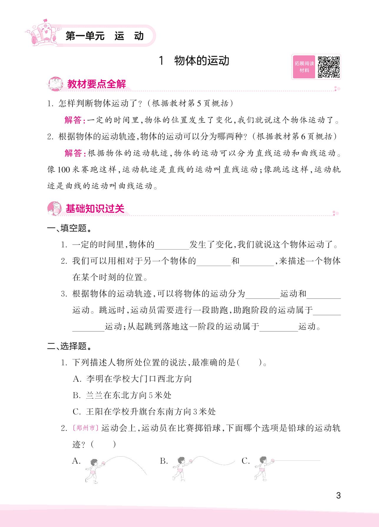 2023上册四年级科学大象版 第一单元 运动——1 物体的运动