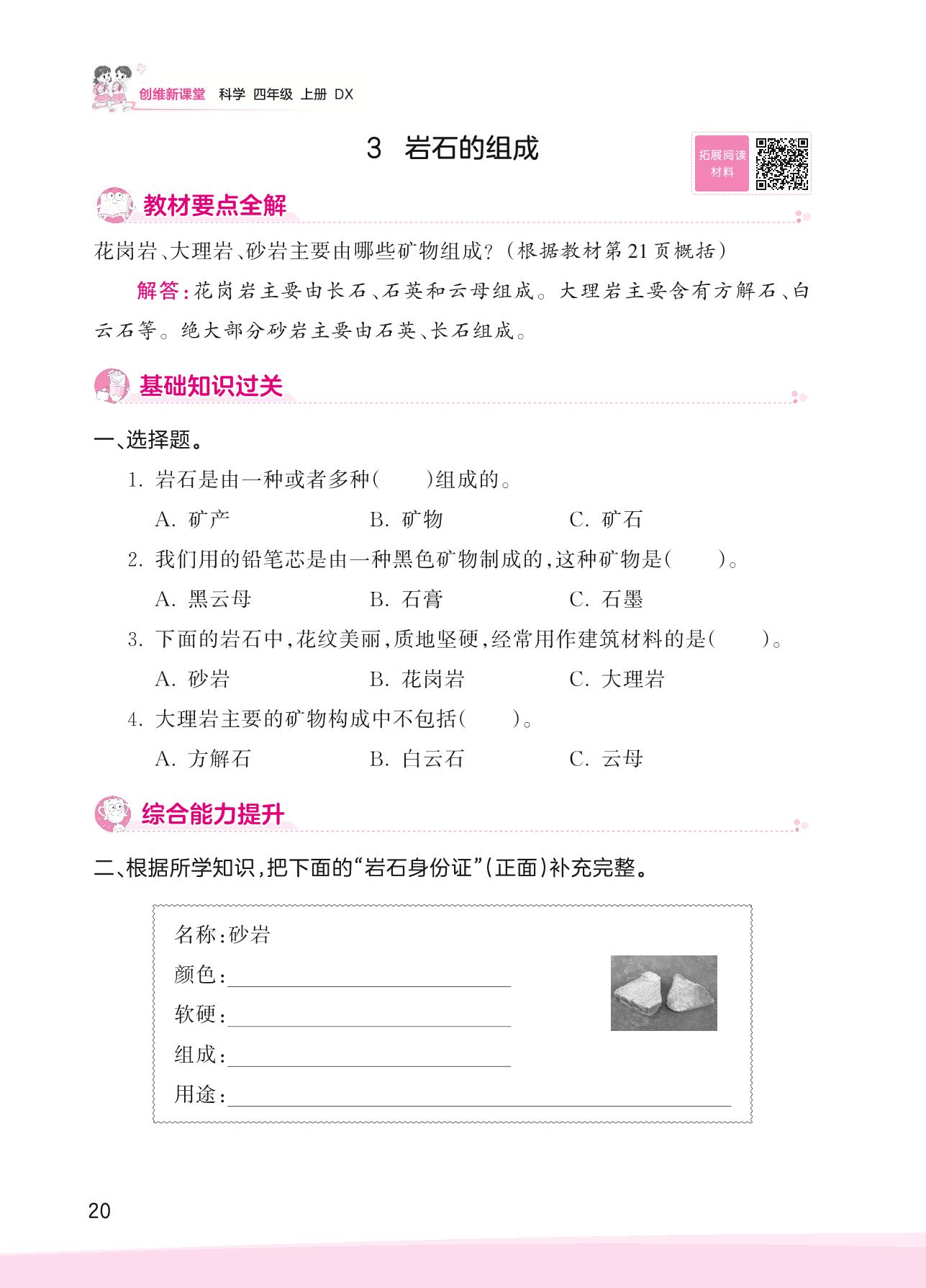 2023上册四年级科学大象版 第二单元 岩石与矿产——3 岩石的组成