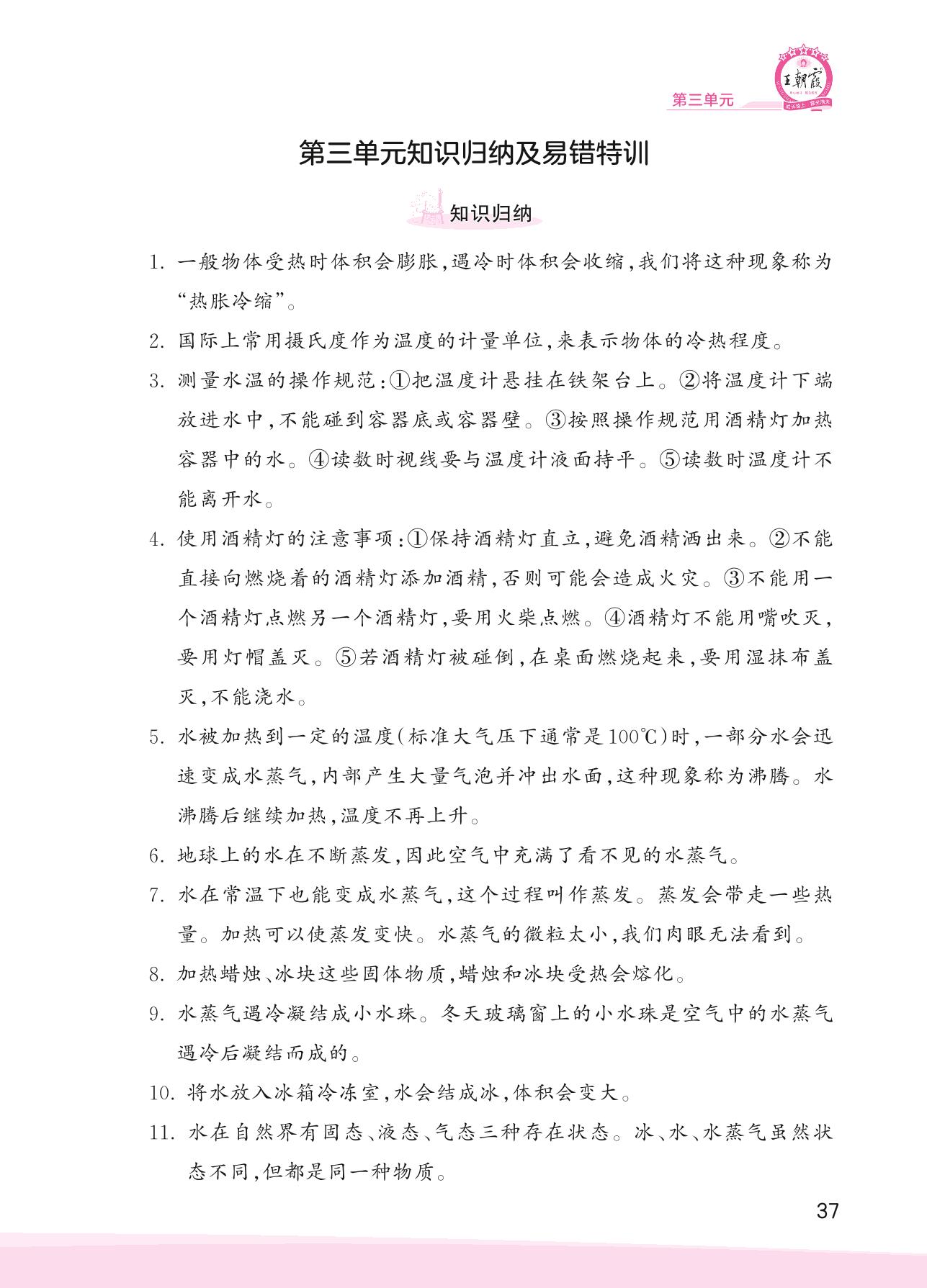 2023上册四年级科学大象版 第三单元知识归纳及易错特训