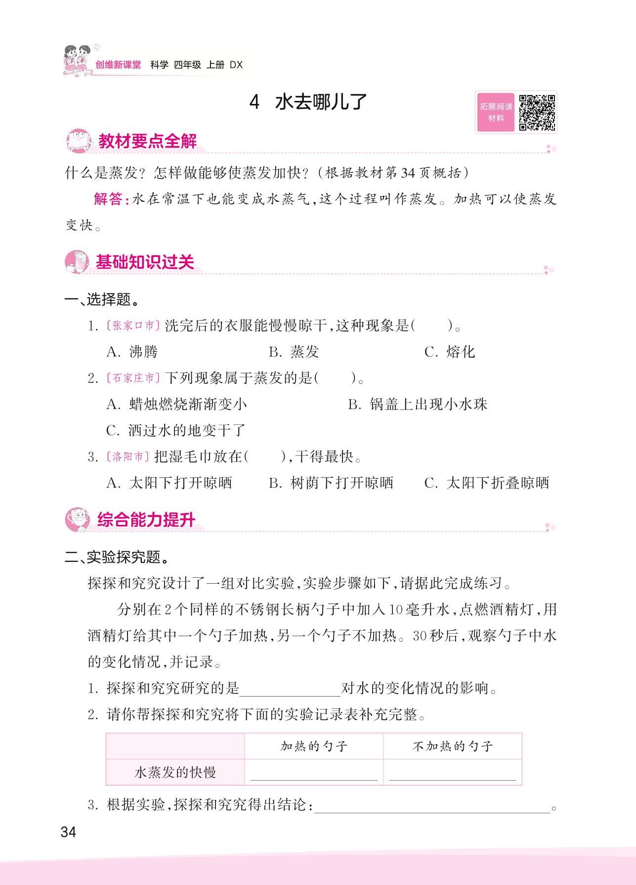 2023上册四年级科学大象版 第三单元 冷与热——4 水去哪儿了