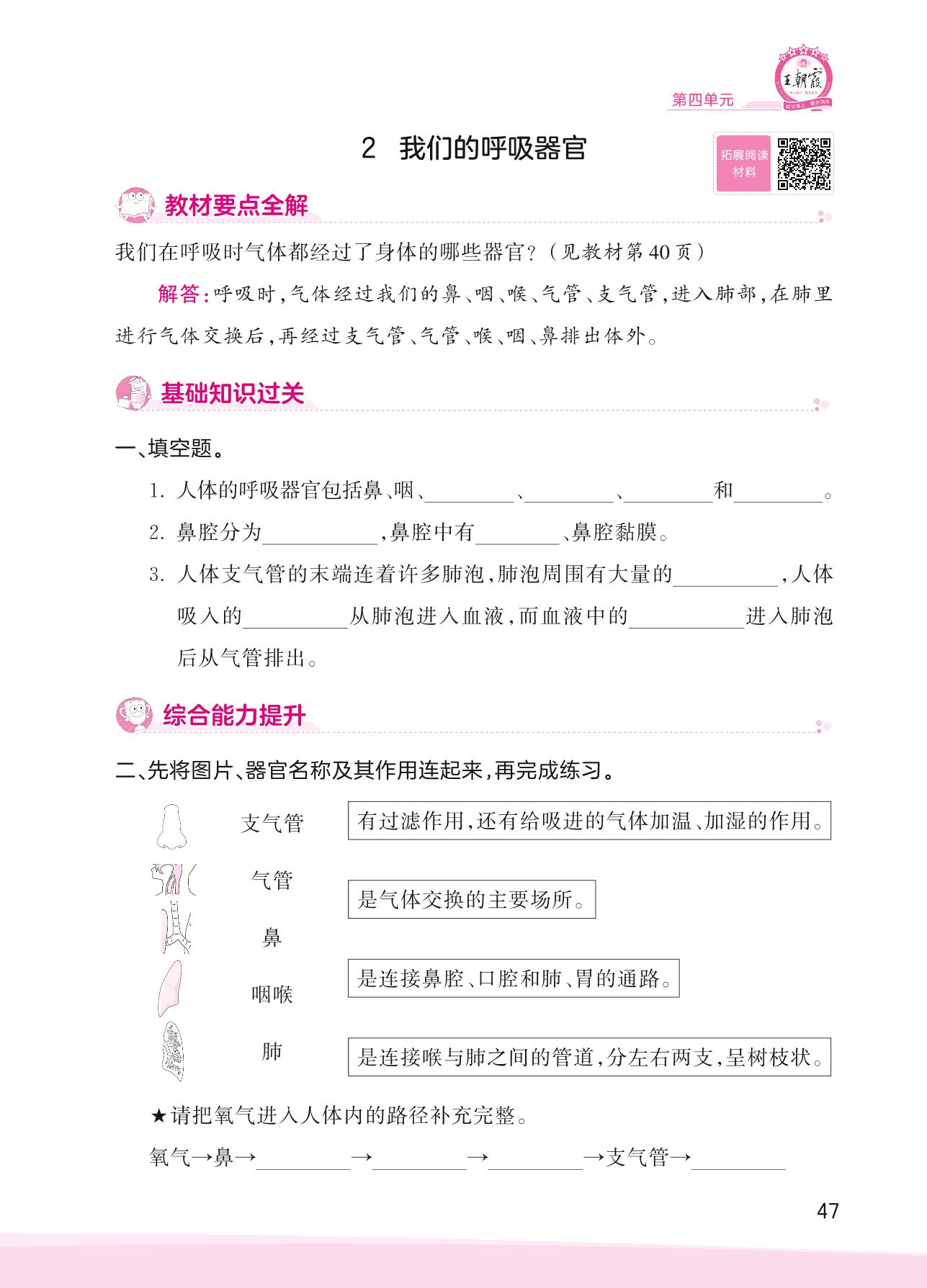 2023上册四年级科学大象版 第四单元 人体的呼吸器官——2 我们的呼吸器官