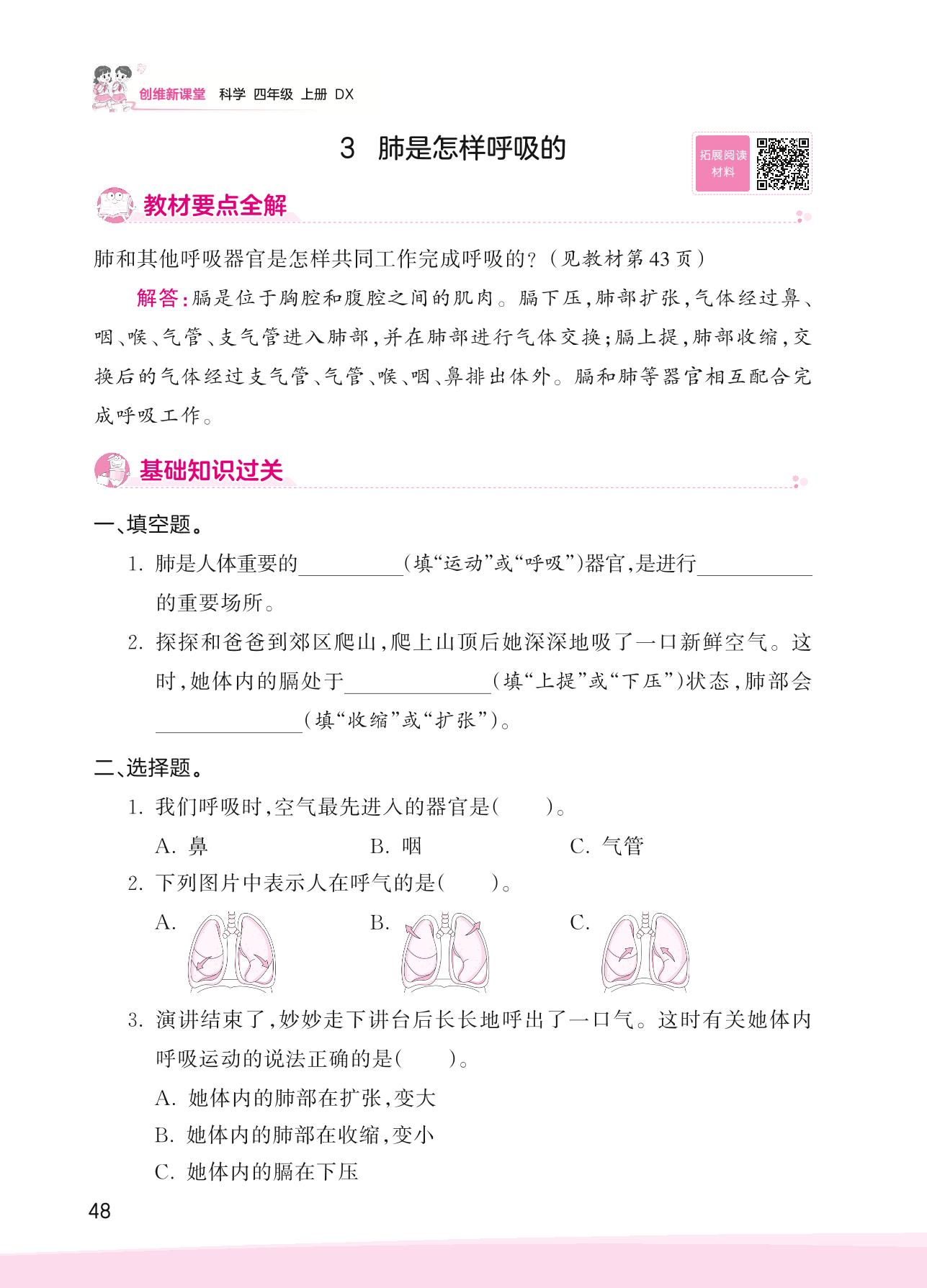 2023上册四年级科学大象版 第四单元 人体的呼吸器官——3 肺是怎样呼吸的
