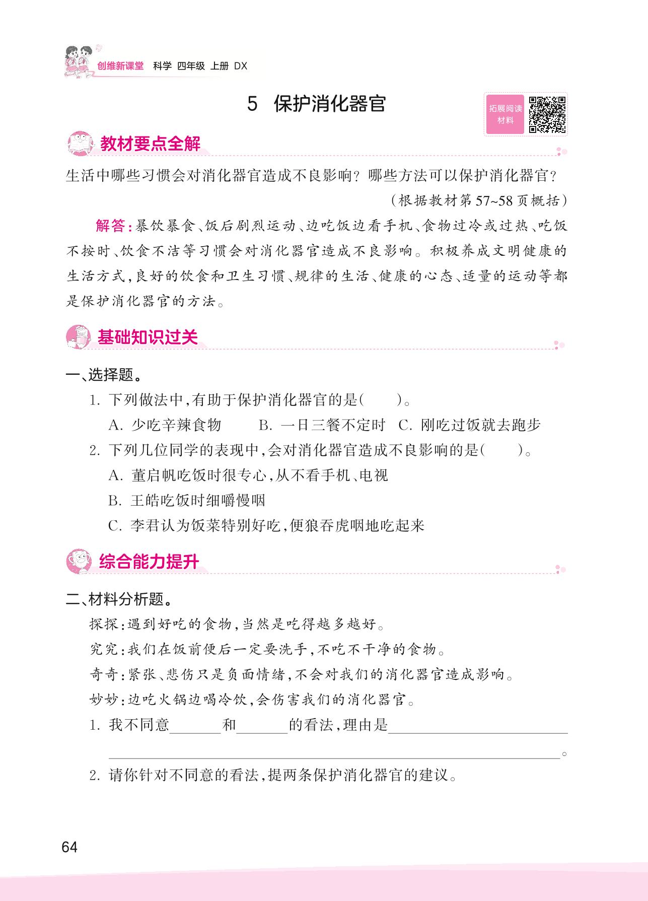 2023上册四年级科学大象版 第五单元 人体的消化器官——5 保护消化器官