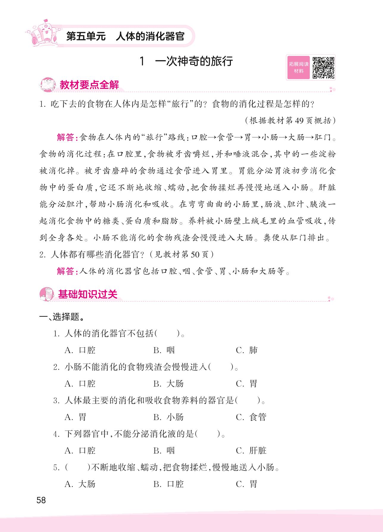 2023上册四年级科学大象版 第五单元 人体的消化器官——1 一次神奇的旅行