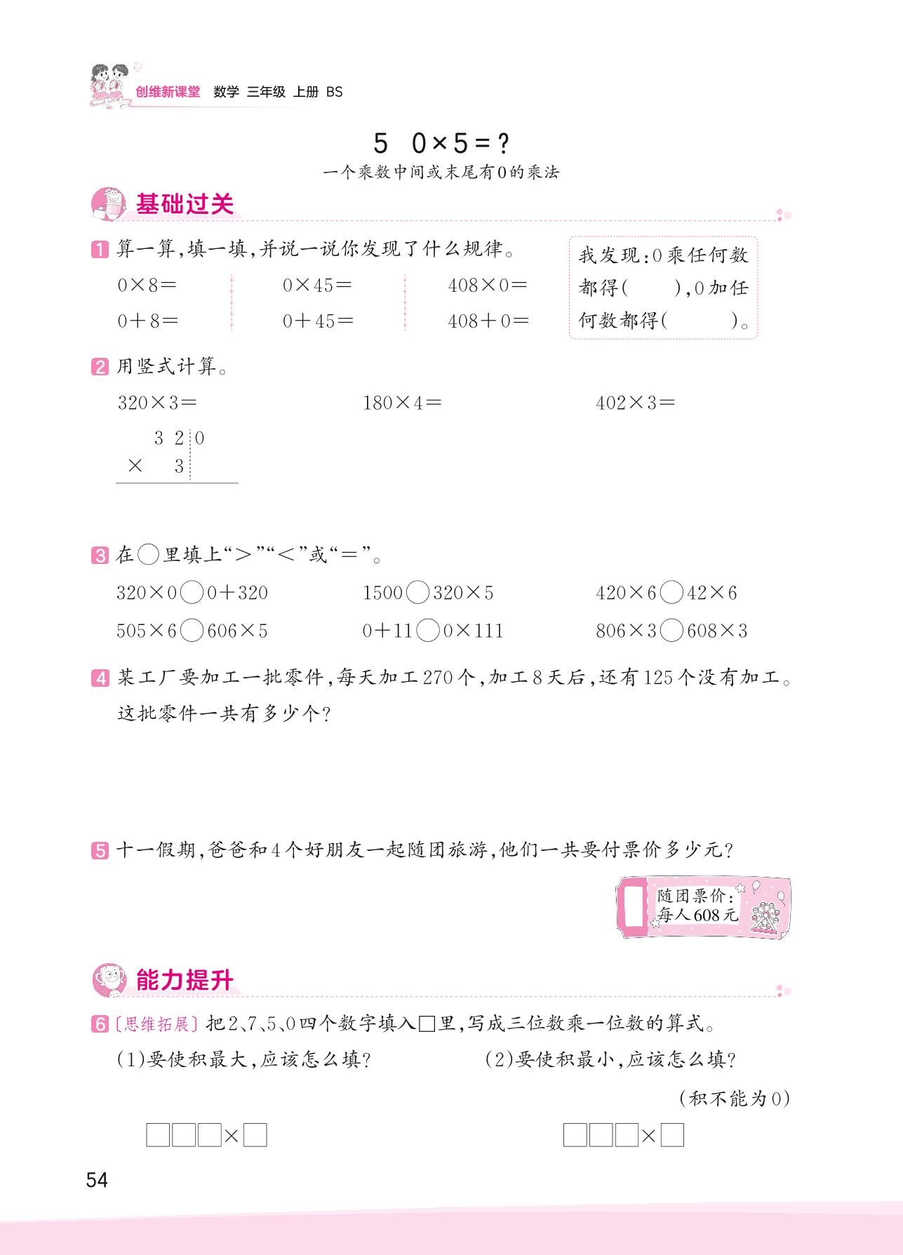 2023上册三年级数学北师版 六 乘法——5 0×5=?