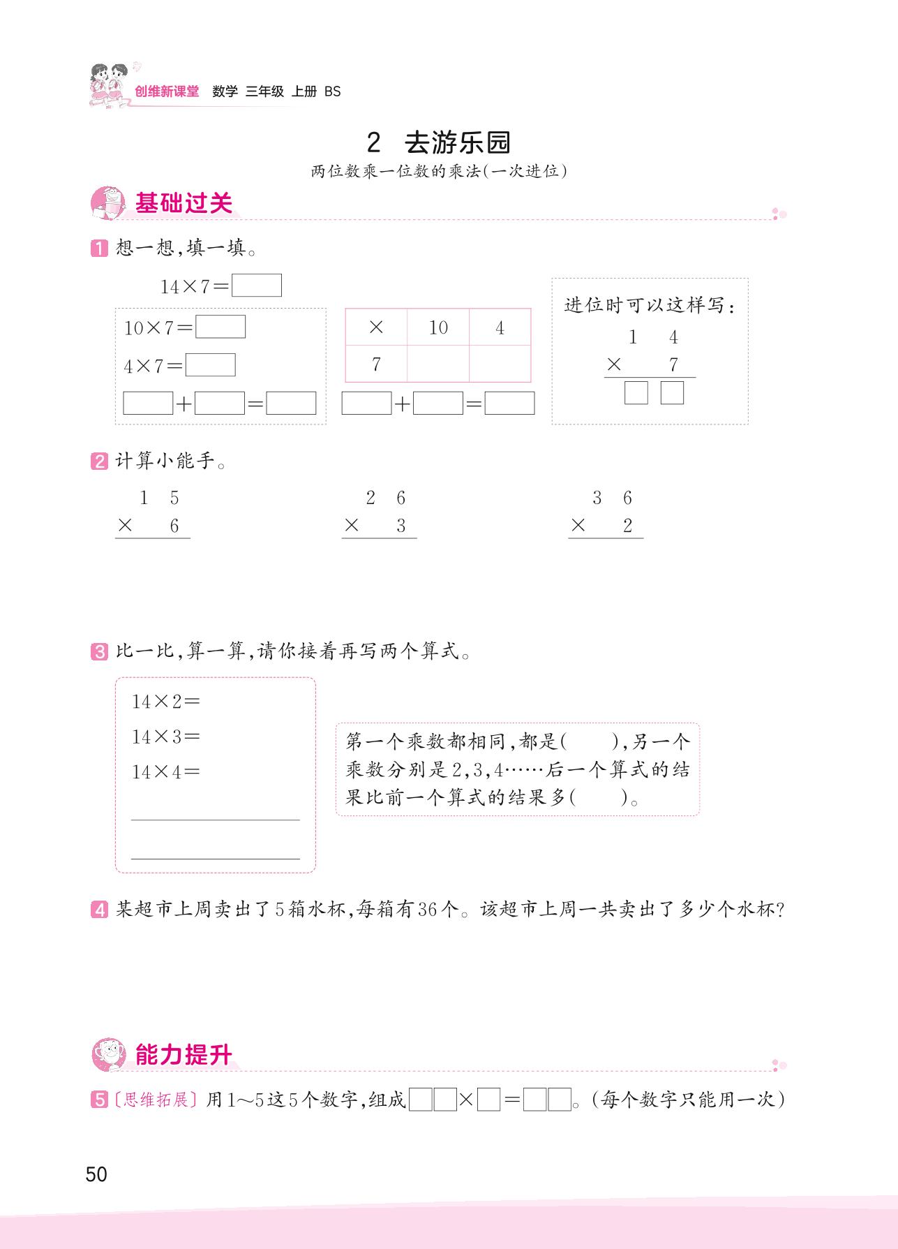 2023上册三年级数学北师版 六 乘法——2 去游乐园