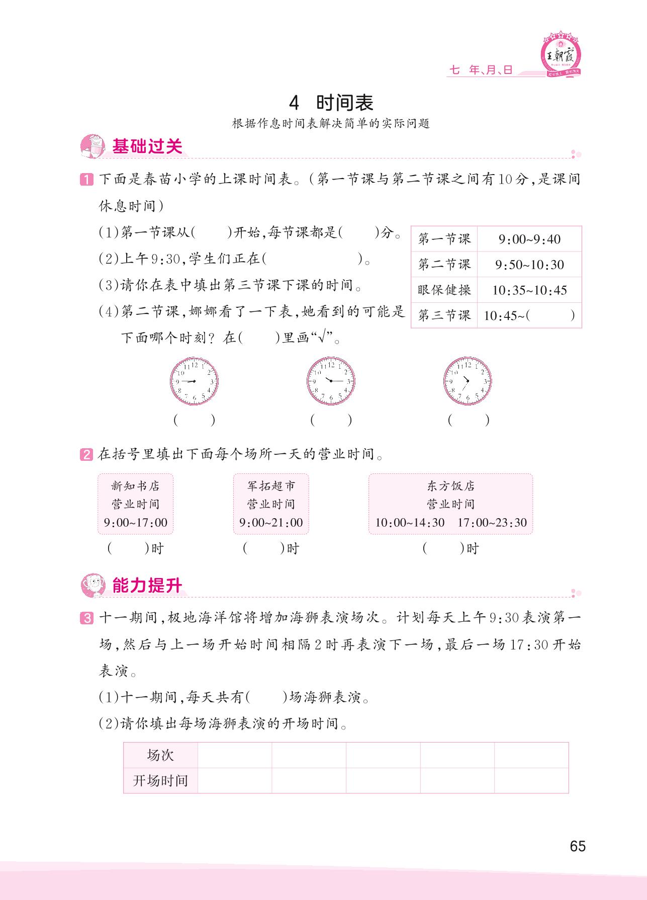 2023上册三年级数学北师版 七 年、月、日——4 时间表