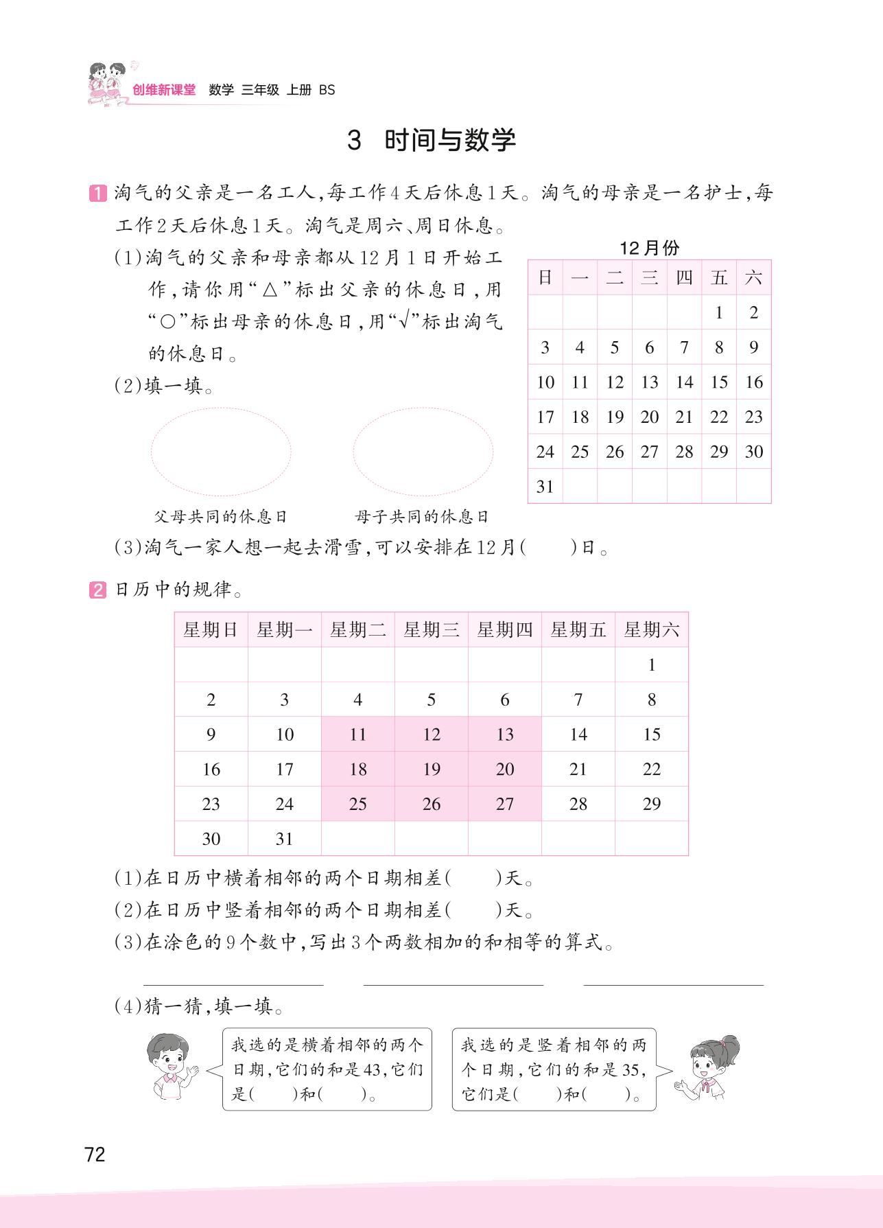2023上册三年级数学北师版 数学好玩——3 时间与数学