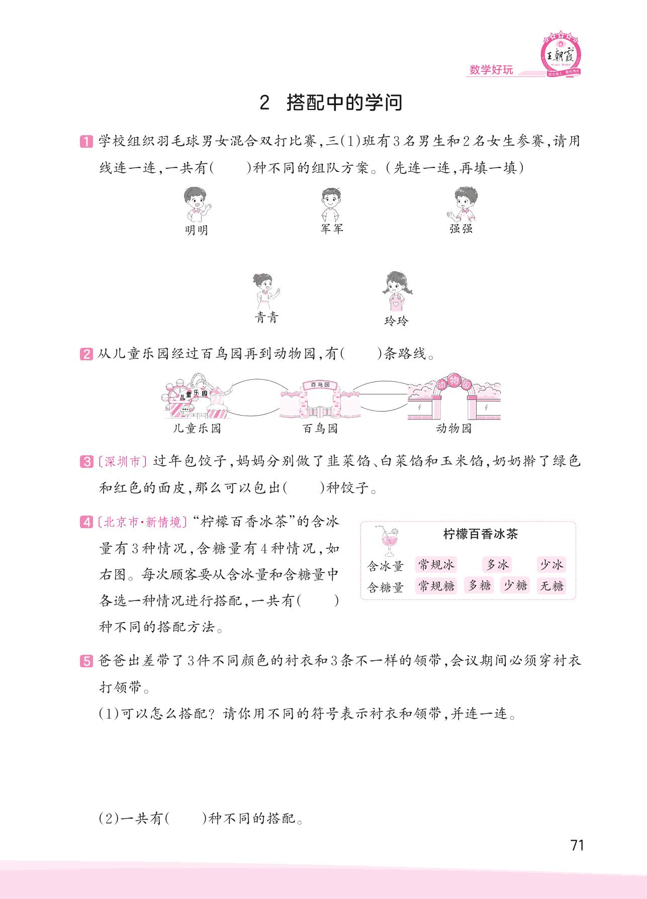 2023上册三年级数学北师版 数学好玩——2 搭配中的学问