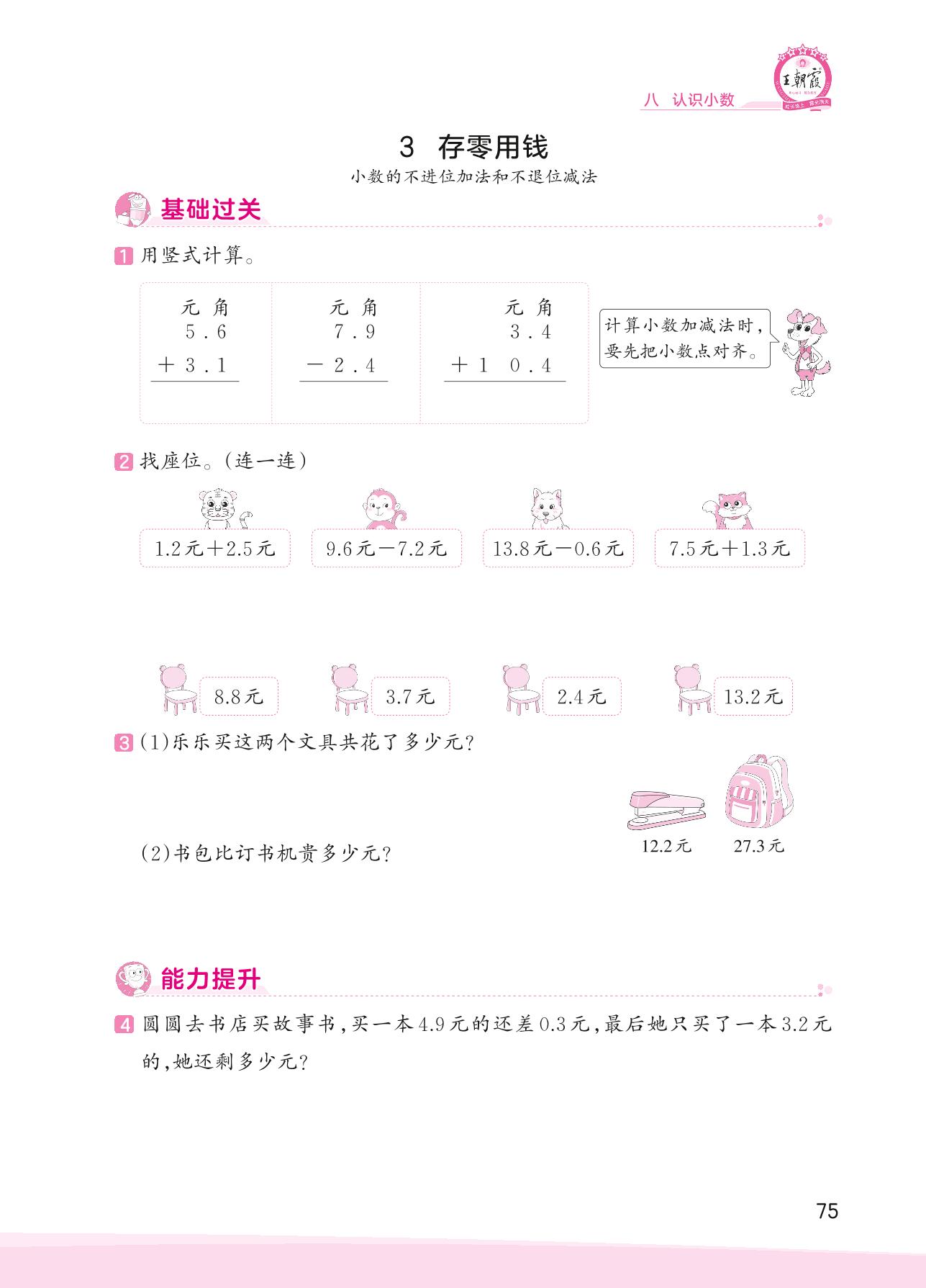 2023上册三年级数学北师版 八 认识小数——3 存零用钱