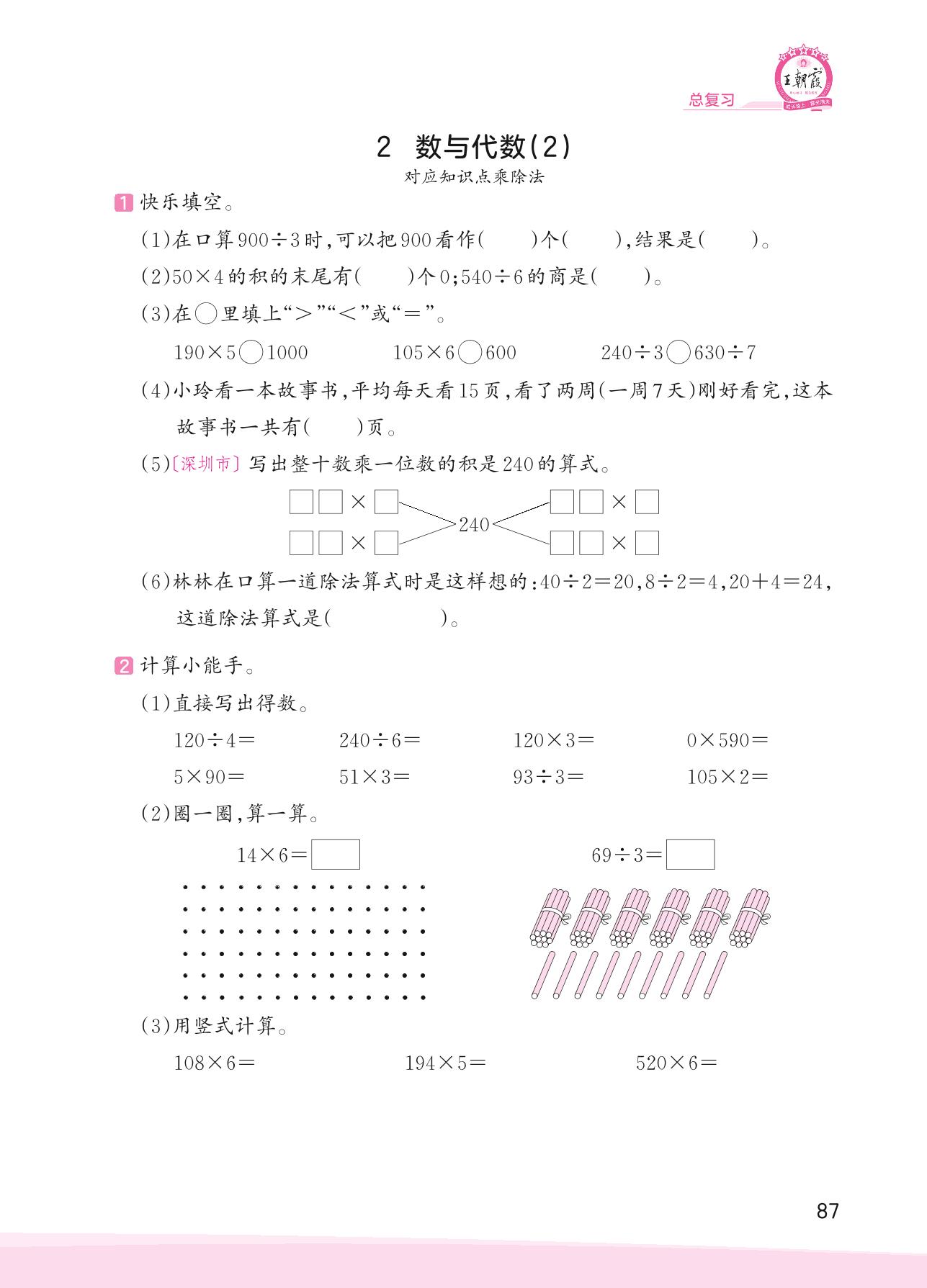 2023上册三年级数学北师版 总复习——2 数与代数(2)