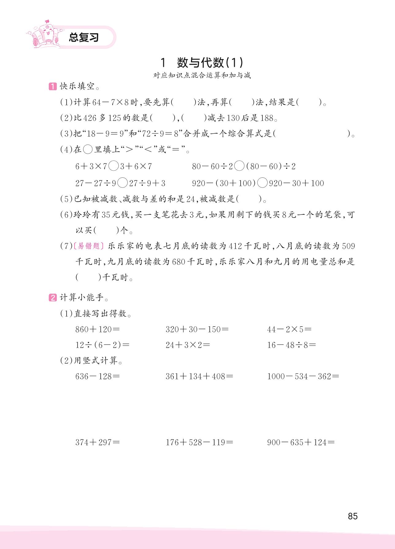 2023上册三年级数学北师版 总复习——1 数与代数(1)