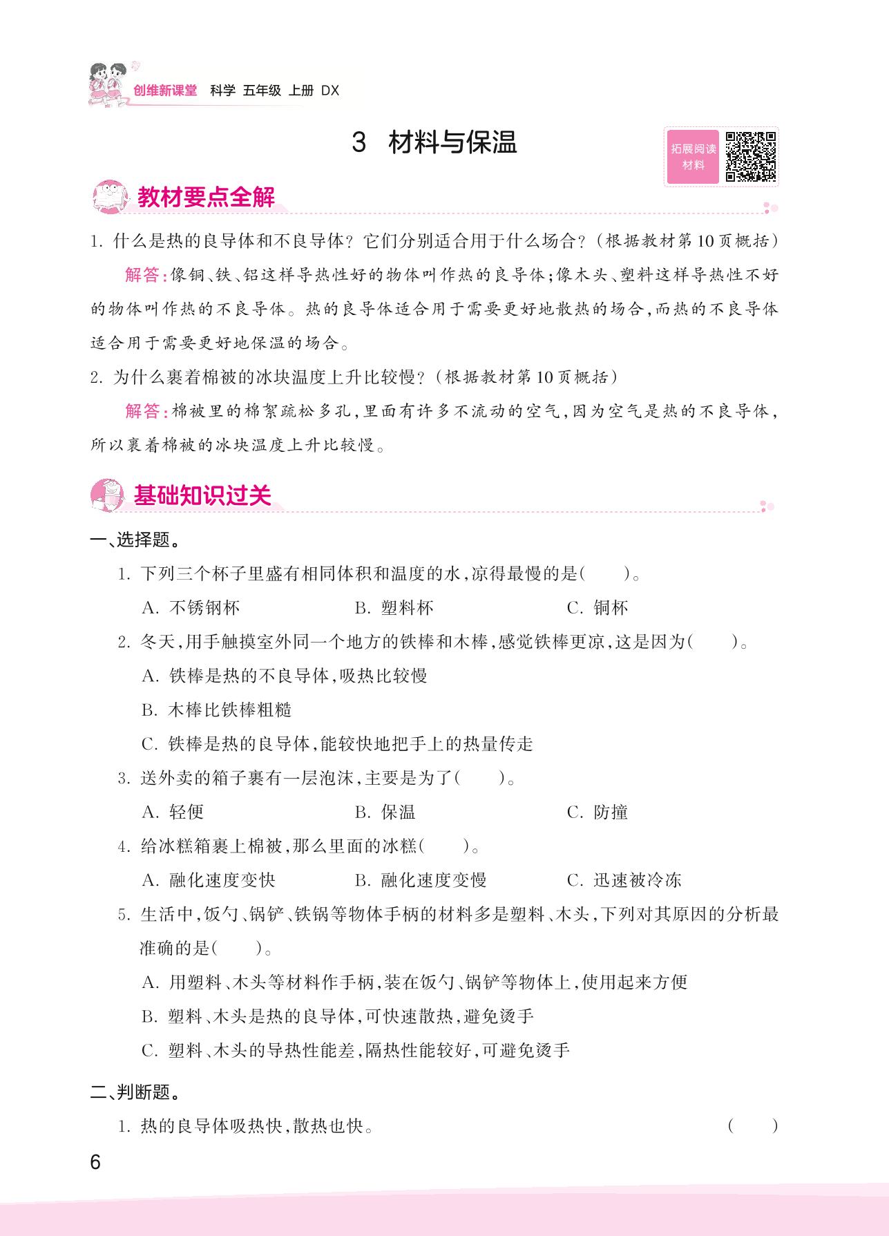 2023上册五年级科学大象版 第一单元 冰淇淋冷藏箱——3 材料与保温