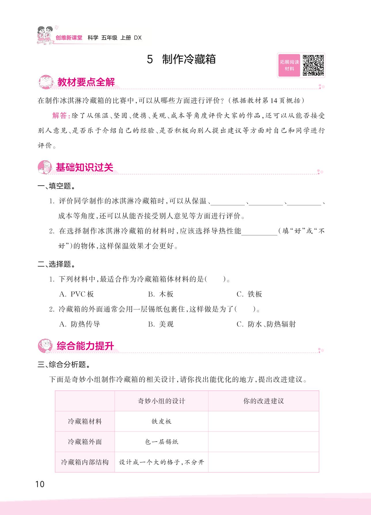 2023上册五年级科学大象版 第一单元 冰淇淋冷藏箱——5 制作冷藏箱