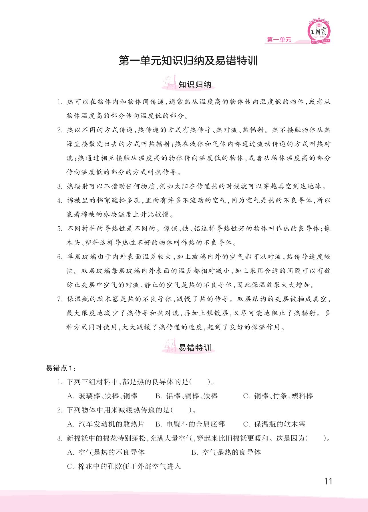 2023上册五年级科学大象版 第一单元知识归纳及易错特训