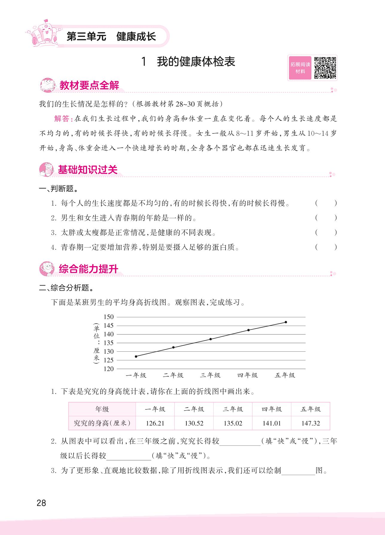 2023上册五年级科学大象版 第三单元 健康成长——1 我的健康体检表