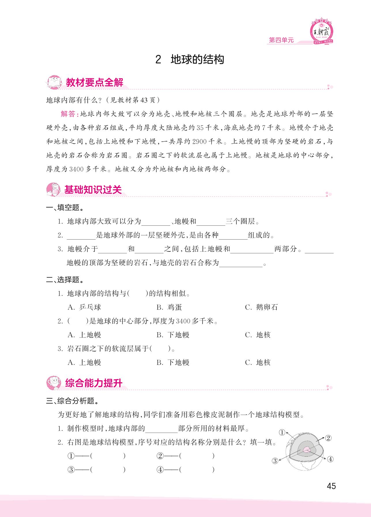 2023上册五年级科学大象版 第四单元 地壳——2 地球的结构